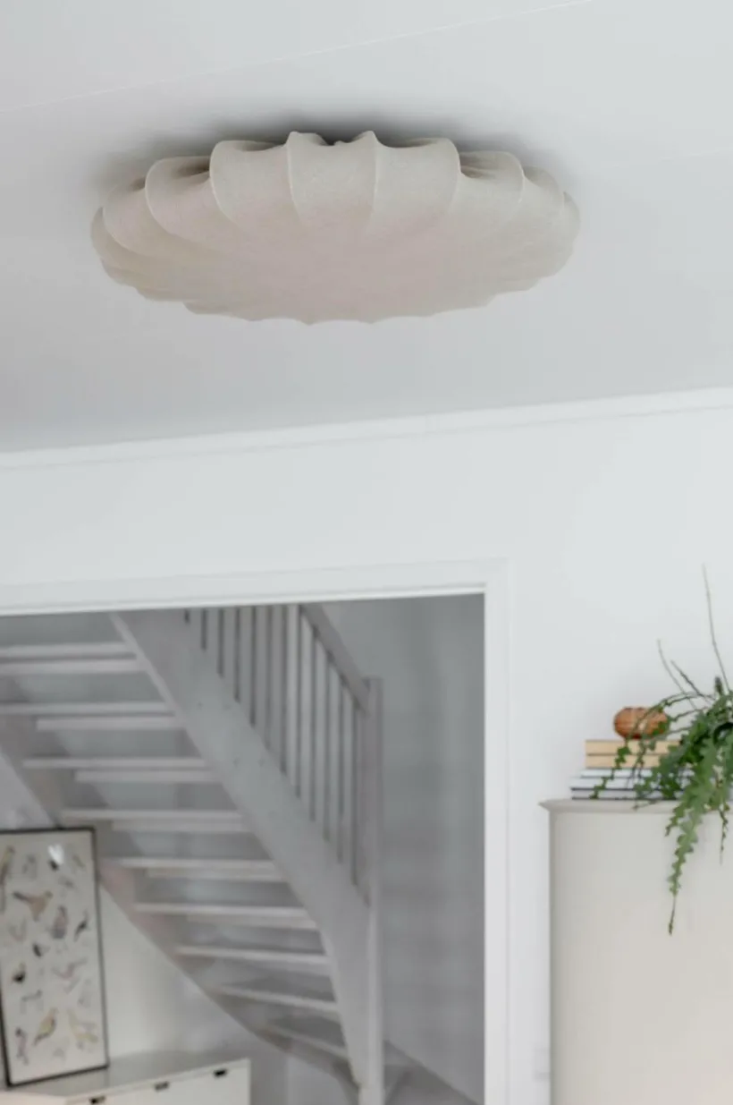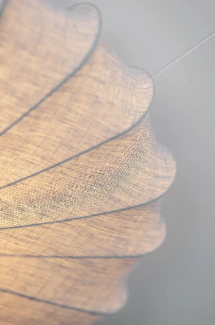 Snygg och stilren plafond i ett underbart linnetyg. Taklampan kräver 3 stycken klotlampor med E27 sockel, max 60w. Takkontakt och ljuskälla köpes separat.