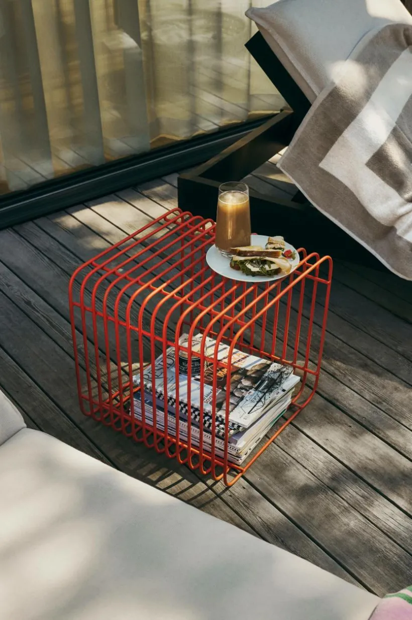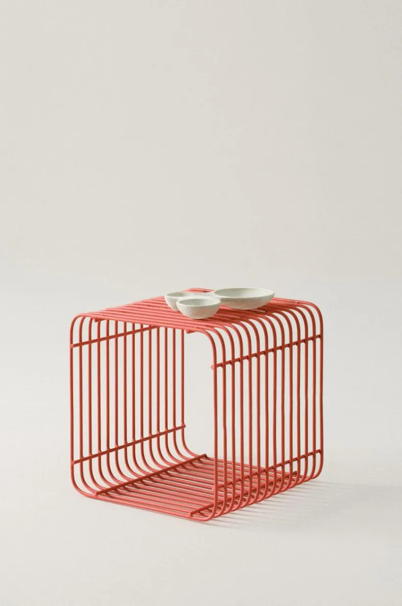 Kubformat sidobord av metallvajer som pulverlackerats i klara färger. Rak vajer som formats till ett bord med runda hörn känns både trendigt och lekfullt, ditt färgval sätter tonen.