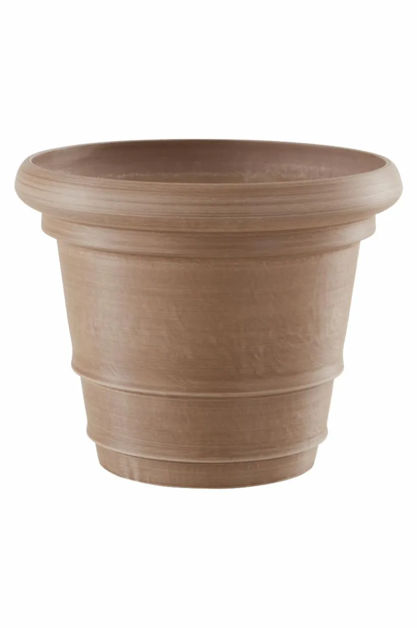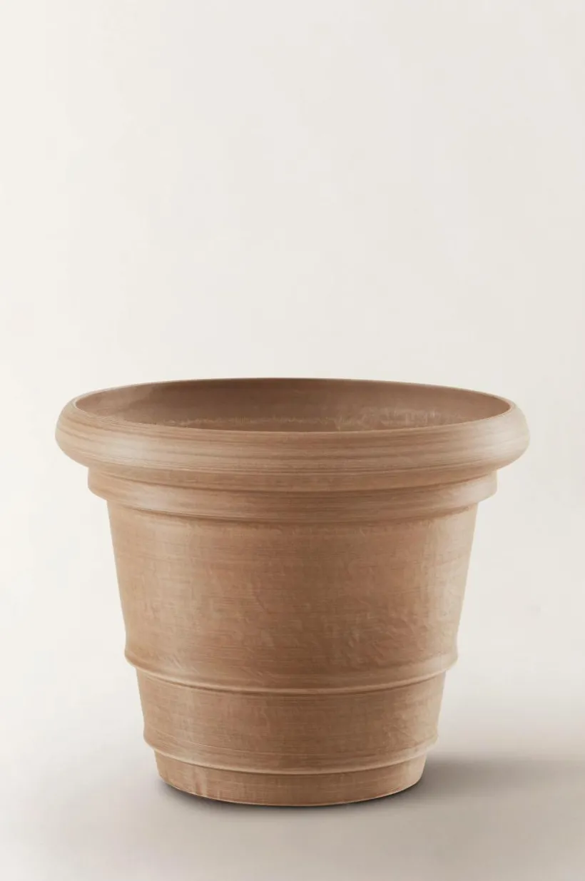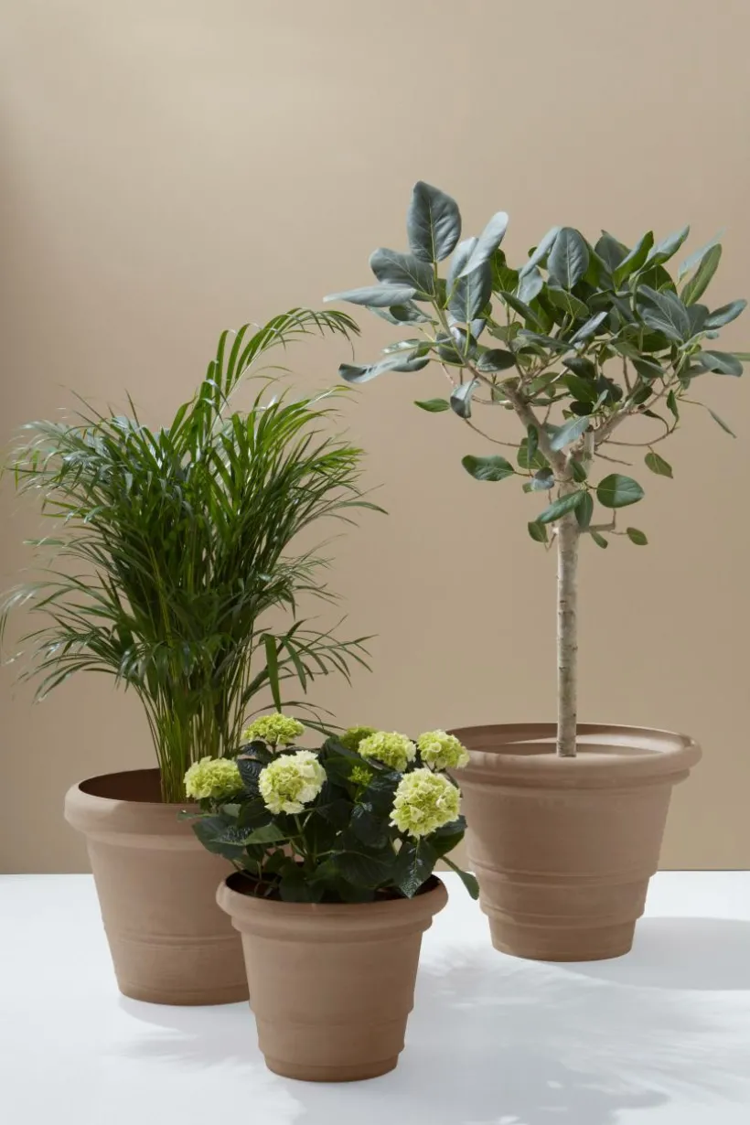 POLLY är en lite mer romantisk utomhuskruka av återvunnet kompositmaterial som ser ut som sten. Fördelen med materialet är att krukan är lätt att hantera, den är tålig och väger en bråkdel av en ler- eller stenkruka. Krukan har fin form med sydeuropeisk inspiration. Den har hel botten med en stansad plugg som du kan trycka ut om du vill ha hål för dränering i botten. Krukan fungerar förstås lika bra inomhus.