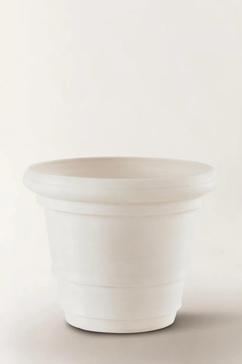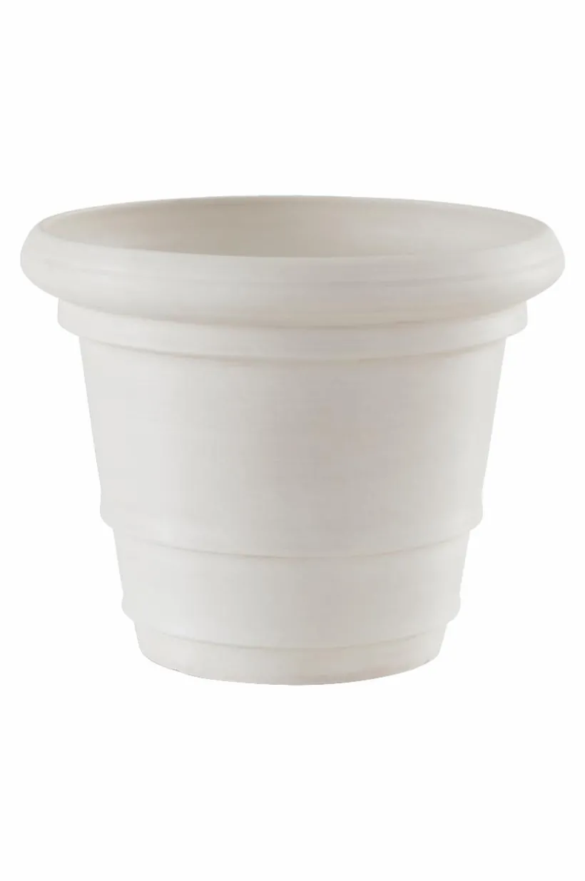 POLLY är en lite mer romantisk utomhuskruka av återvunnet kompositmaterial som ser ut som sten. Fördelen med materialet är att krukan är lätt att hantera, den är tålig och väger en bråkdel av en ler- eller stenkruka. Krukan har fin form med sydeuropeisk inspiration. Den har hel botten med en stansad plugg som du kan trycka ut om du vill ha hål för dränering i botten. Krukan fungerar förstås lika bra inomhus.