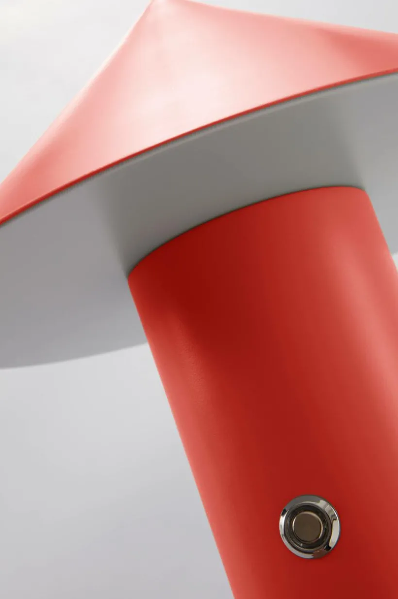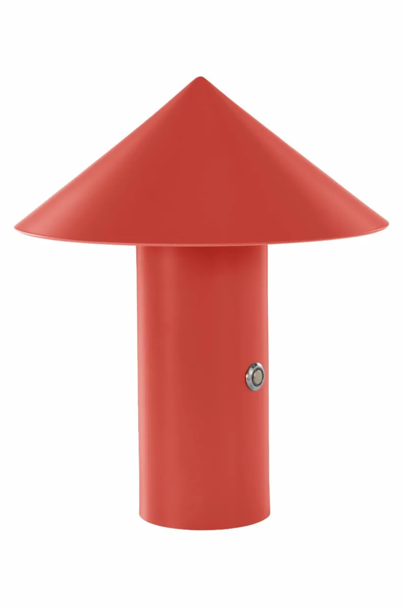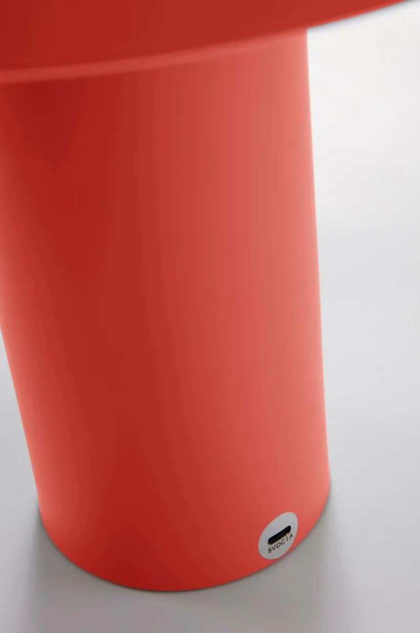 Batteridriven bordslampa med uppladdningsbart batteri och dimmerfunktion. Lampfot och skärm är i metall med lackad yta. Lampan är uppladdningsbar och ansluts med USB-C, laddsladd medföljer. Knappen på lampfoten trycks in för att dimra ljuset. Ljuskällan som är LED är integrerad i lampan.