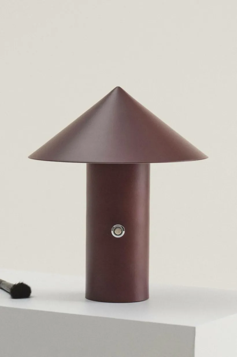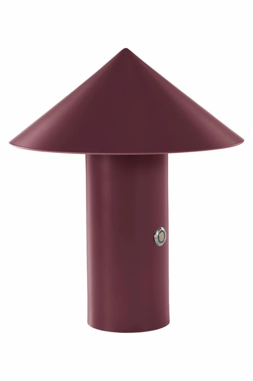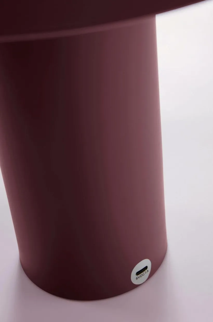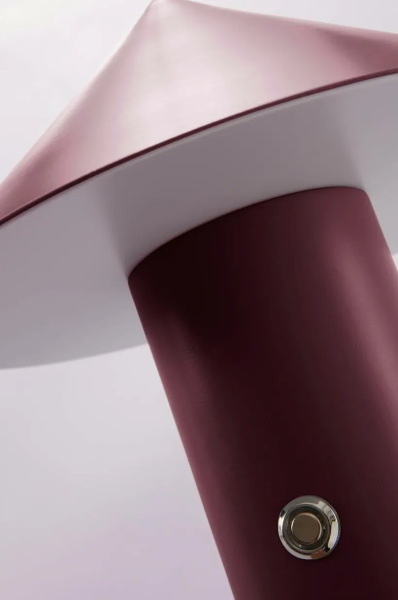 Batteridriven bordslampa med uppladdningsbart batteri och dimmerfunktion. Lampfot och skärm är i metall med lackad yta. Lampan är uppladdningsbar och ansluts med USB-C, laddsladd medföljer. Knappen på lampfoten trycks in för att dimra ljuset. Ljuskällan som är LED är integrerad i lampan.