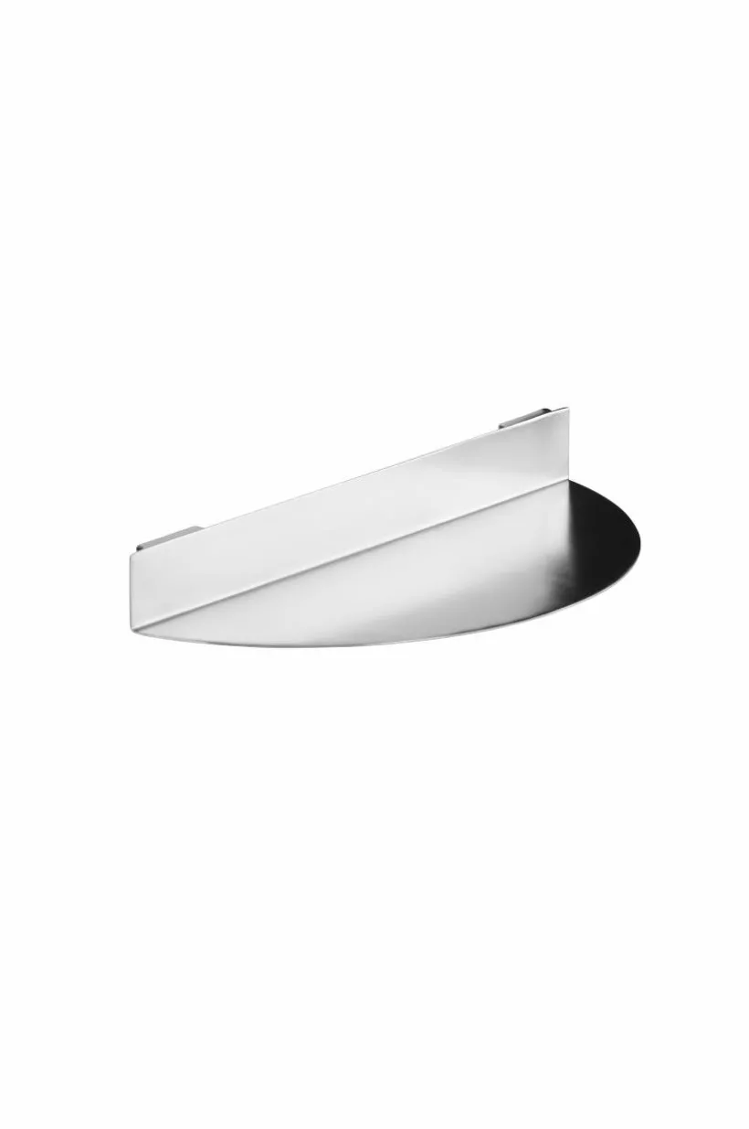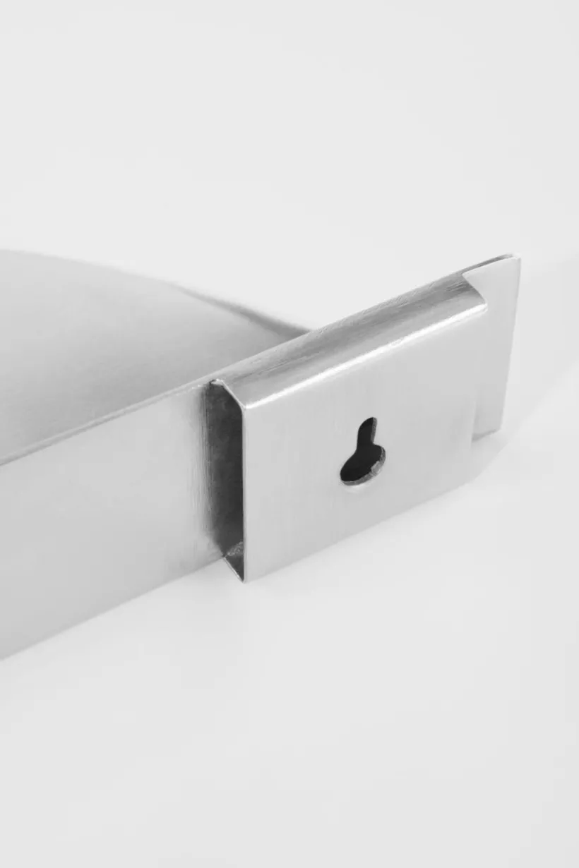 Vägghylla av guld-eller silverfärgad metall. Nätt och smidig modell med hål för upphängning.
