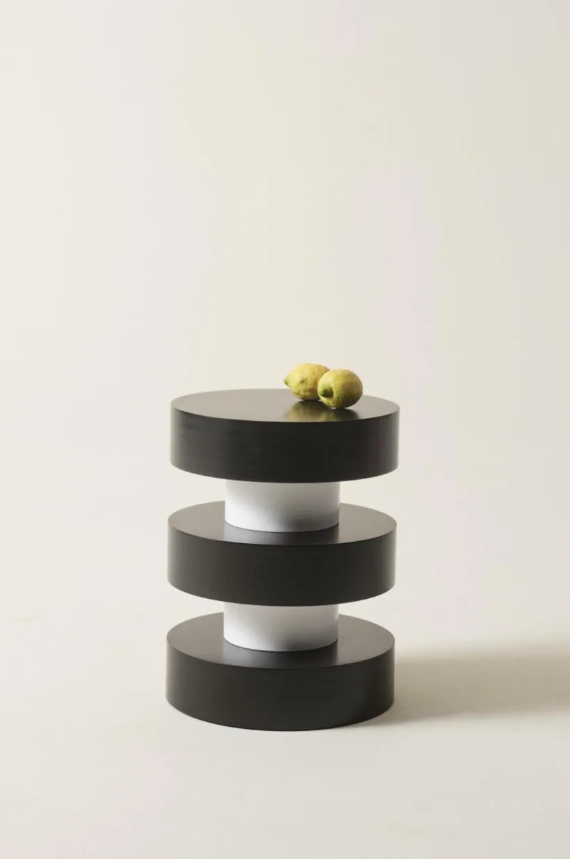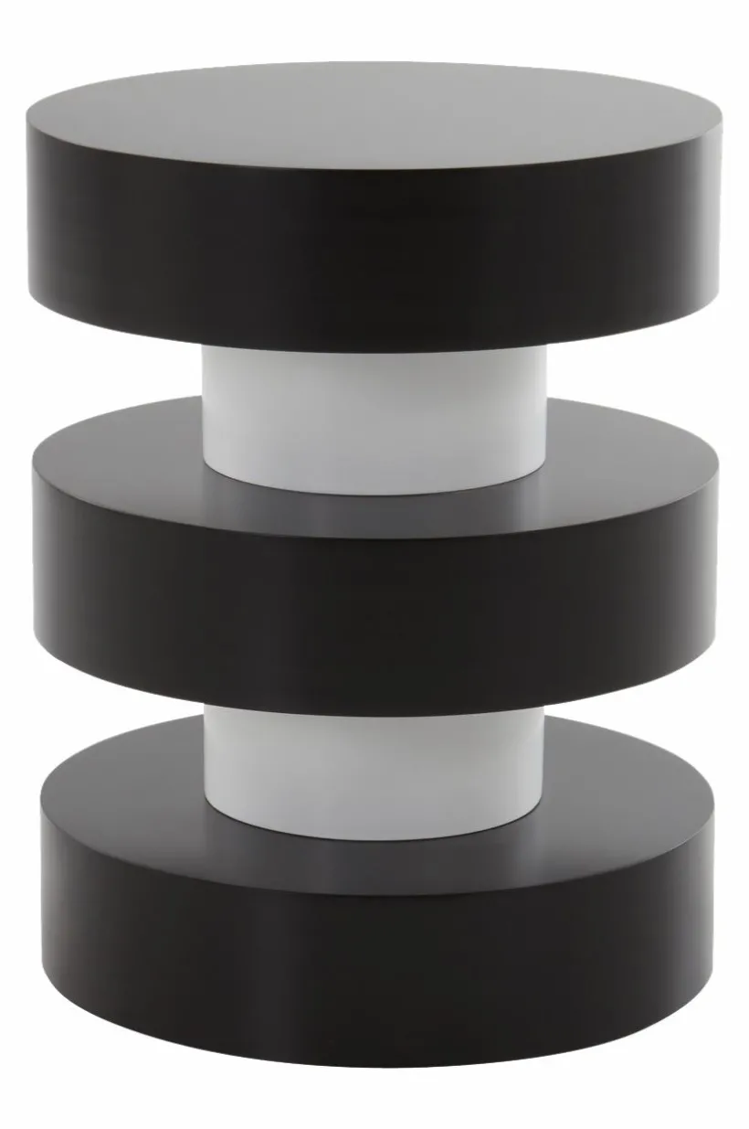 Tvåfärgat sidobord av MDF. Det runda sidobordet har innovativ design där kontrasterna skapar spänning. Ett litet bord kan placeras på många olika ställen där det fyller en funktion eller bara är snyggt. PORTELLO kommer att tillföra en fräsch ny känsla i rummet. Det målade bordet har vattenbaserad färg som ytskikt.