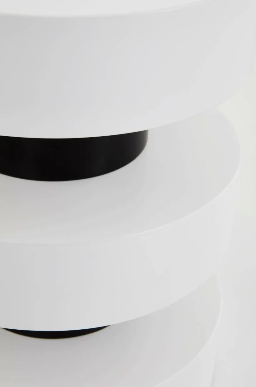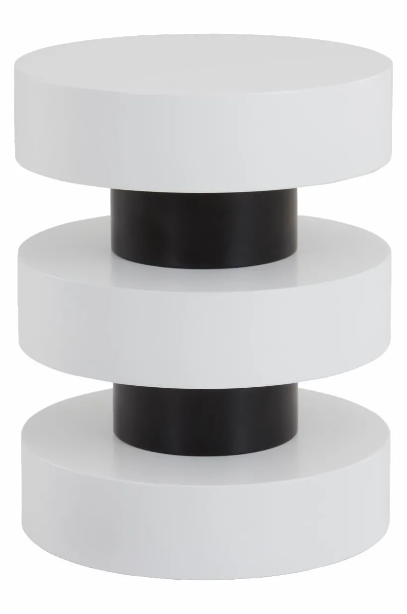Tvåfärgat sidobord av MDF. Det runda sidobordet har innovativ design där kontrasterna skapar spänning. Ett litet bord kan placeras på många olika ställen där det fyller en funktion eller bara är snyggt. PORTELLO kommer att tillföra en fräsch ny känsla i rummet. Det målade bordet har vattenbaserad färg som ytskikt.