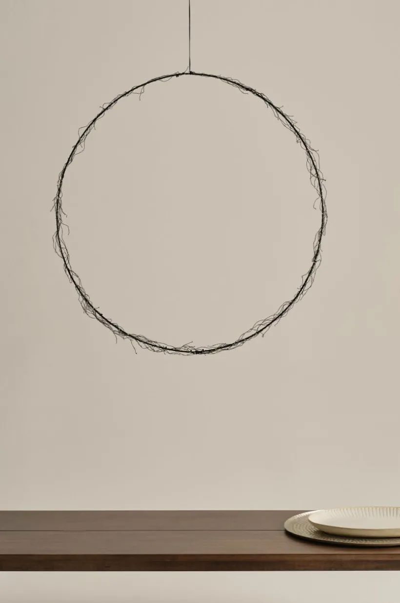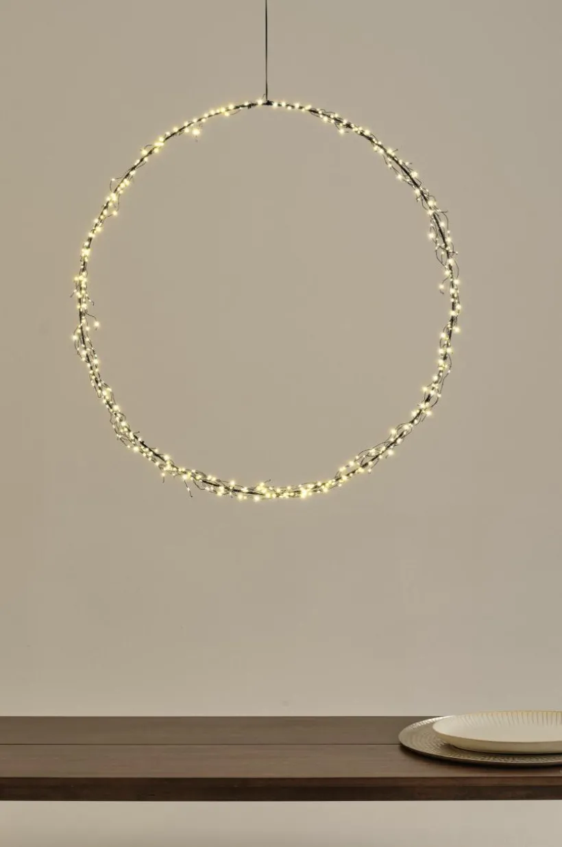 PORTIA LED-KRANS ger en modern touch till din heminredning med sin minimalistiska design. Tunna, böjbara metalltrådar gör att du kan skapa anpassade former, vilket ger en personlig touch till alla utrymmen. De varma LED-lamporna ger en lugnande glöd, perfekt för både festliga och vardagliga miljöer. Oavsett om den placeras på en dörr, vägg eller bord, förbättrar denna mångsidiga krans atmosfären utan ansträngning. Få ditt hem att lysa med modern stil.