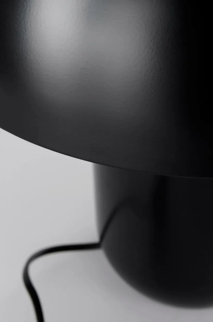 Enfärgad bordslampa i metall med matt yta och som en svamp i formen. Svart sladd, sladdlängd 1,5 m.
