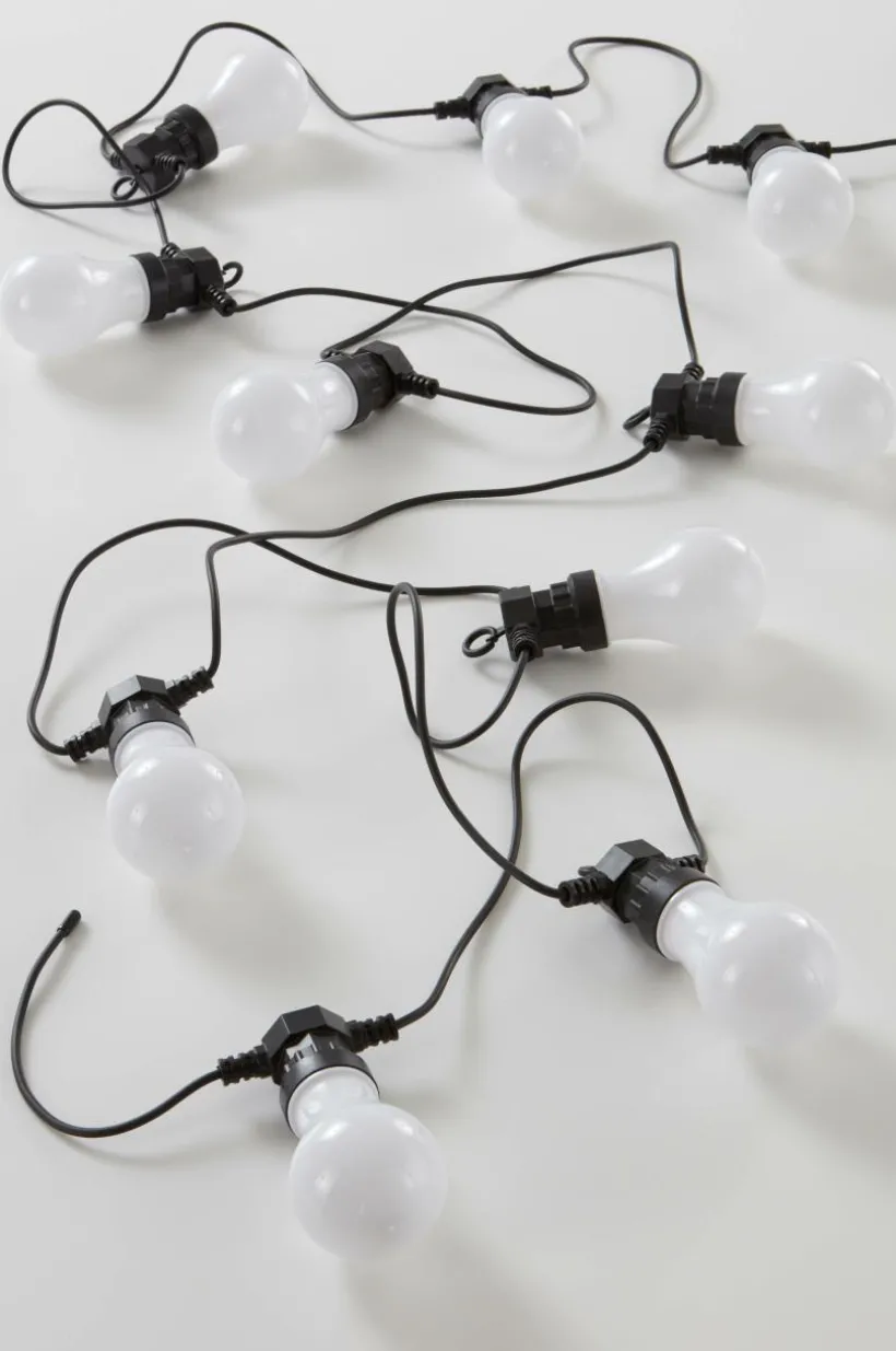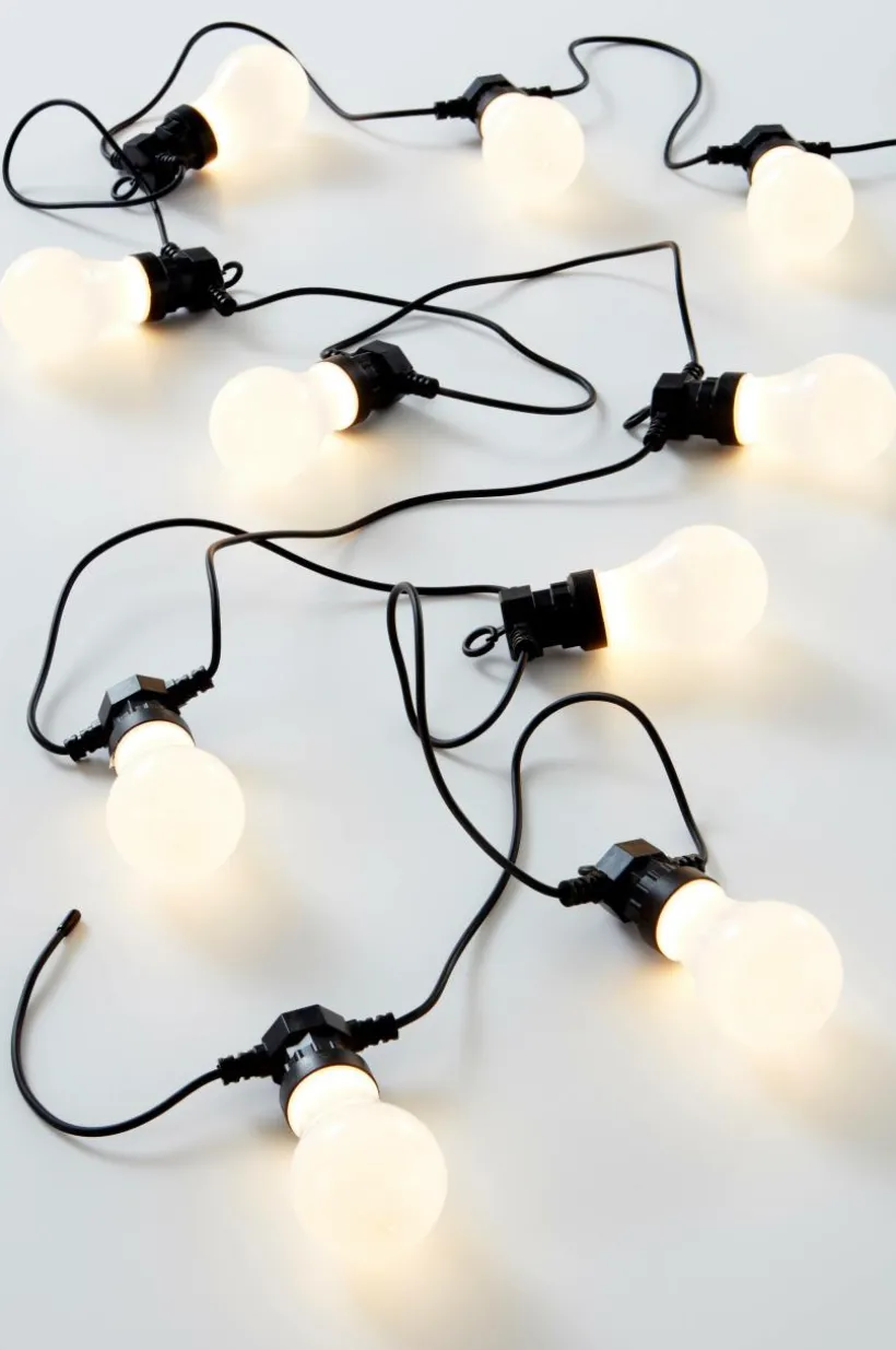 Storlek: Slingans längd 500 cm, 50 cm mellan lamporna. Lampornas höjd 14 cm, ø 6 cm.