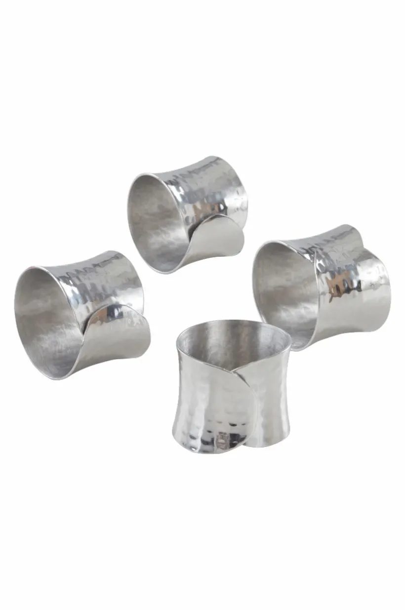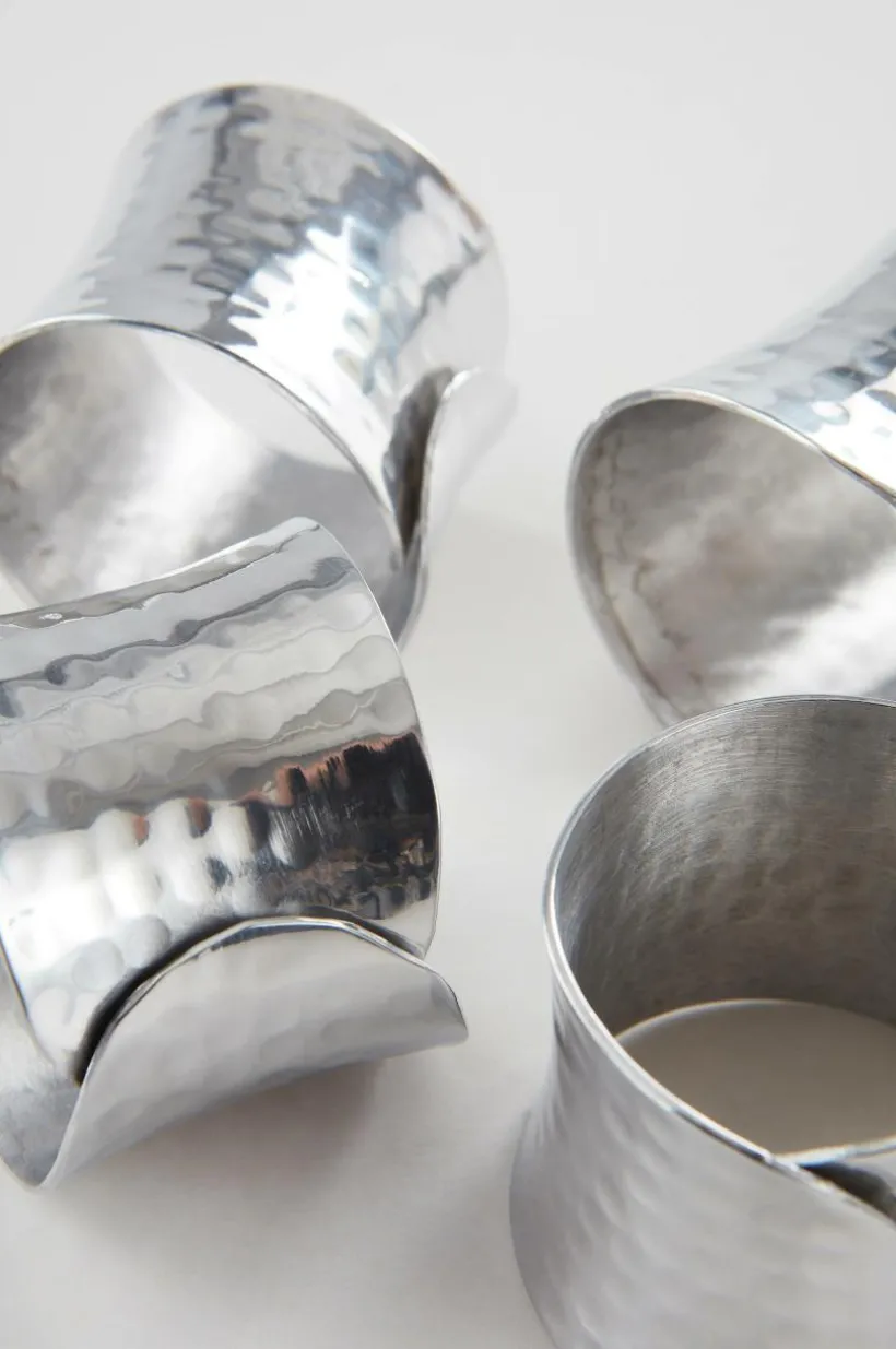 4-pack med servettringar av aluminium med hamrat mönster och polerad finish.