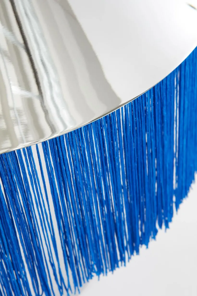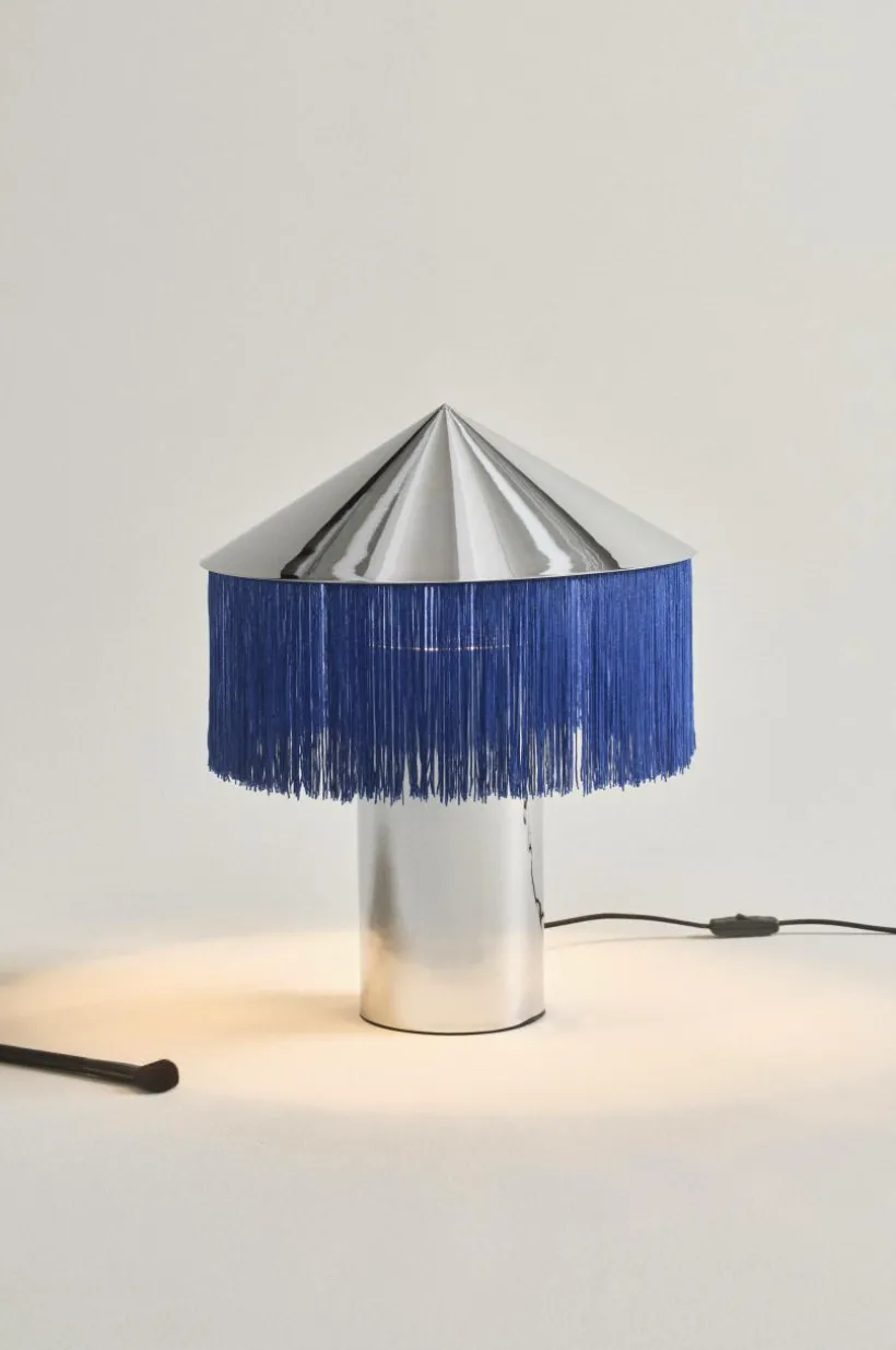 Bordslampan REGENCY är en oerhört läcker bordslampa som väcker uppmärksamhet. Lampfot och skärm är av metall som krönts med en lång franskant runt skärmen. Lampan får exklusiv känsla med textilsladd som matchar fransen, strömbrytaren sitter på sladden. Väggkontakten är Europa-modell, det vill säga platt och med tunnare stift (4 mm). Lampan är ojordad, klass 2.
