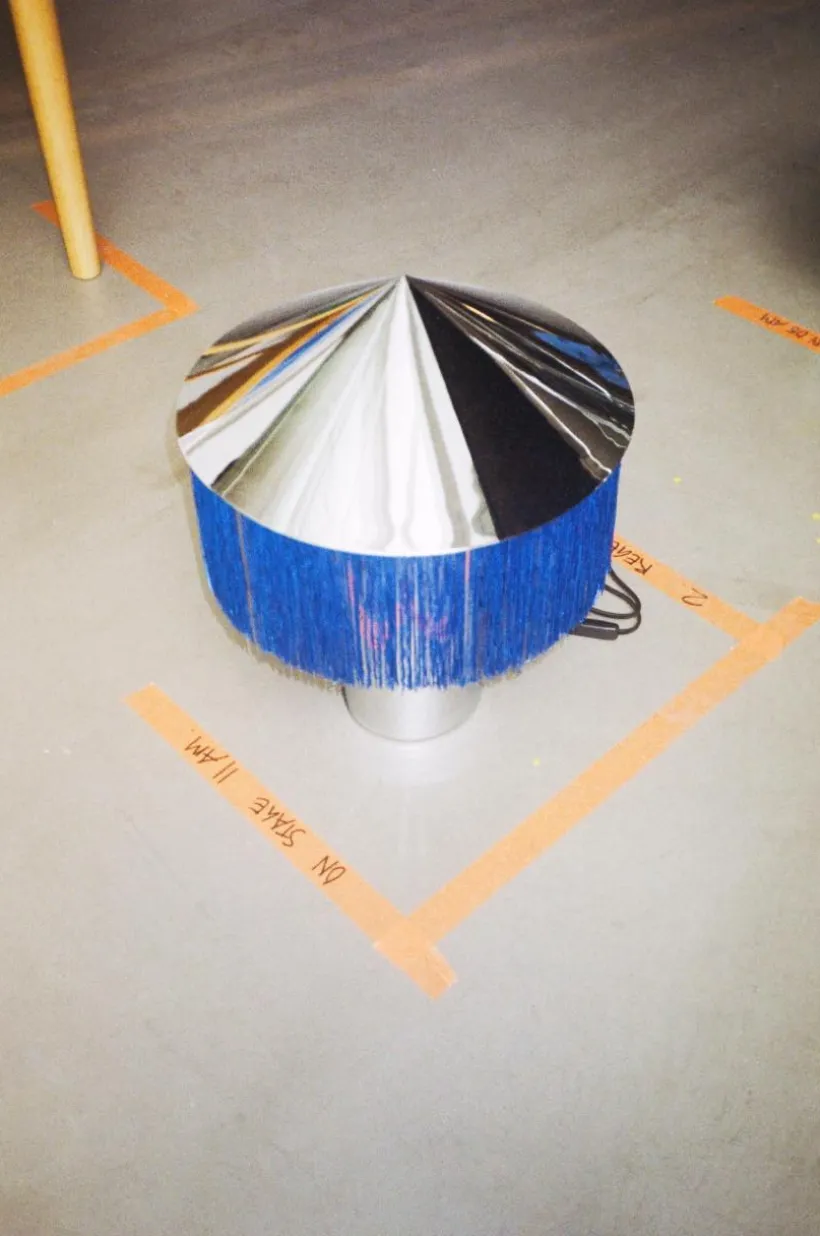Storlek: Total höjd 49 cm, ø 40 cm, franslängd 17 cm. Lampfot höjd 30 cm, ø 15 cm.