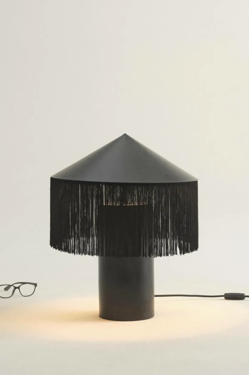 Bordslampan REGENCY är en oerhört läcker bordslampa som väcker uppmärksamhet. Lampfot och skärm är av metall som krönts med en lång franskant runt skärmen. Lampan får exklusiv känsla med textilsladd som matchar fransen, strömbrytaren sitter på sladden. Väggkontakten är Europa-modell, det vill säga platt och med tunnare stift (4 mm). Lampan är ojordad, klass 2.
