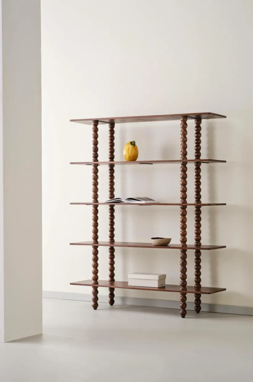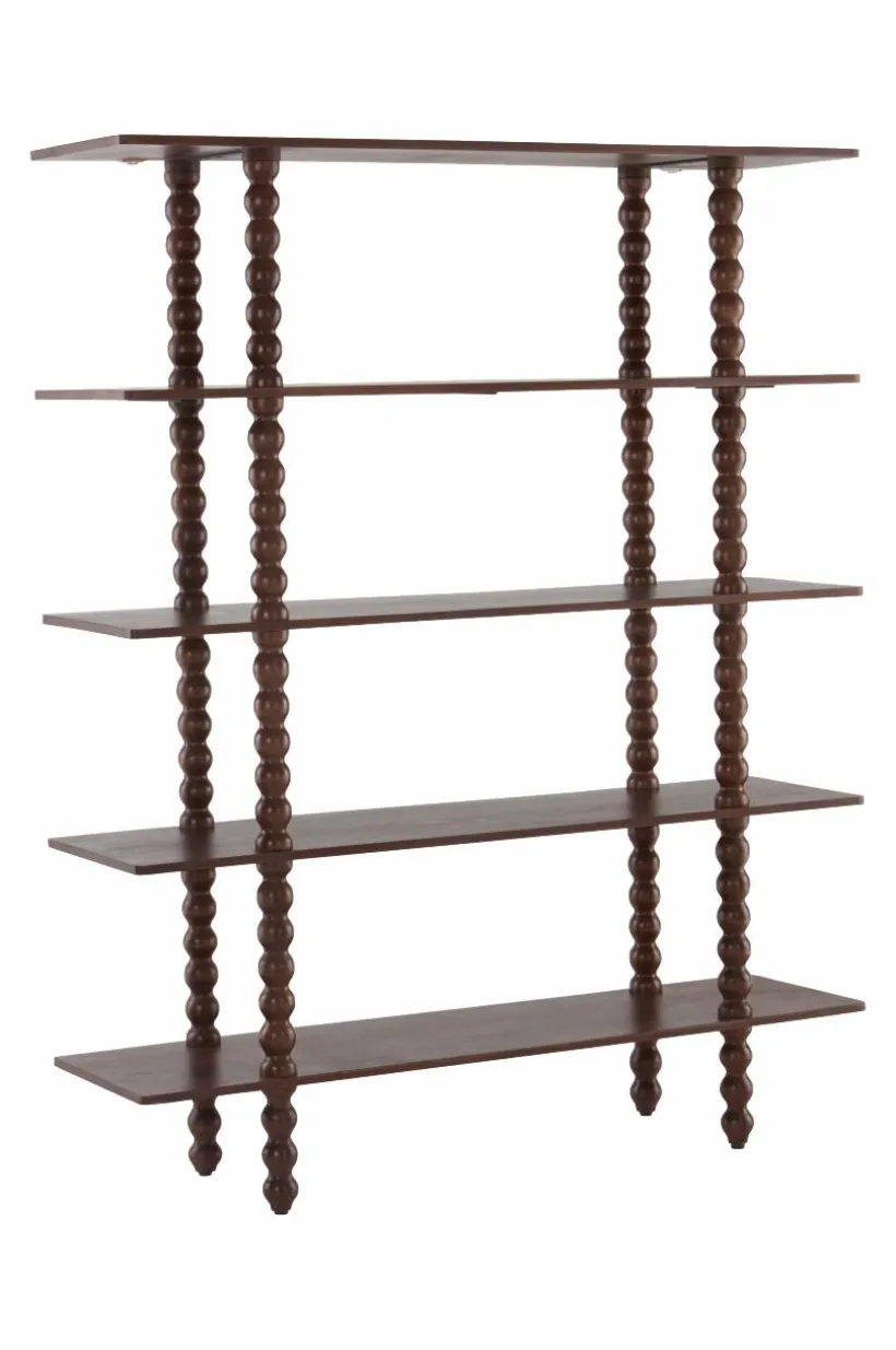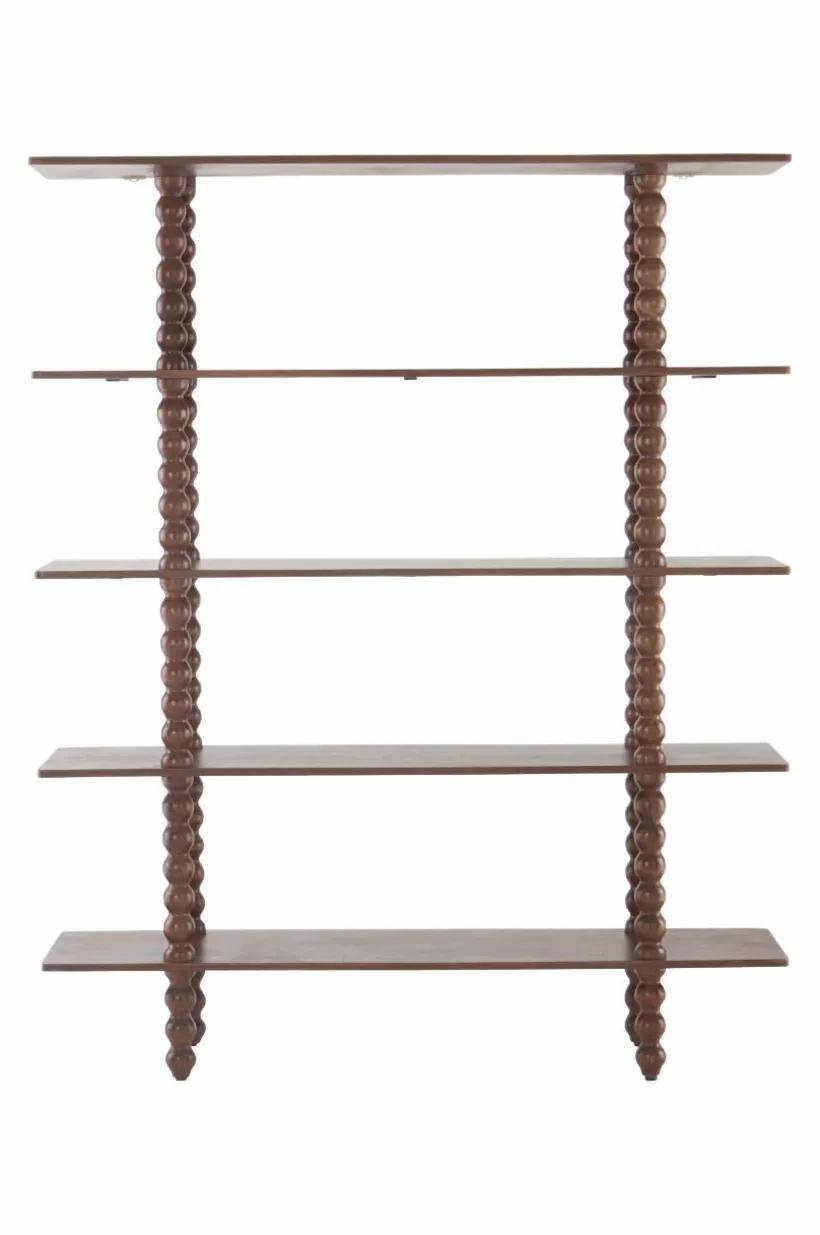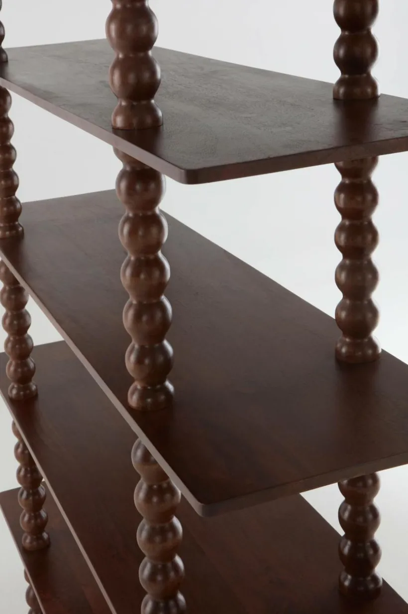 Omfamna modern stil med bokhyllan RENDONDO. Den är tillverkad av mangoträ och har fem rymliga hyllplan som ger gott om förvaring för dina favoritböcker, inredning och mycket mer. Dess dekorativa ben ger en touch av elegans och kompletterar perfekt alla vardagsrum. Para ihop den med det matchande konsolbordet för en sammanhängande look. Förhöj din hemdesign med bokhyllan RENDONDO.