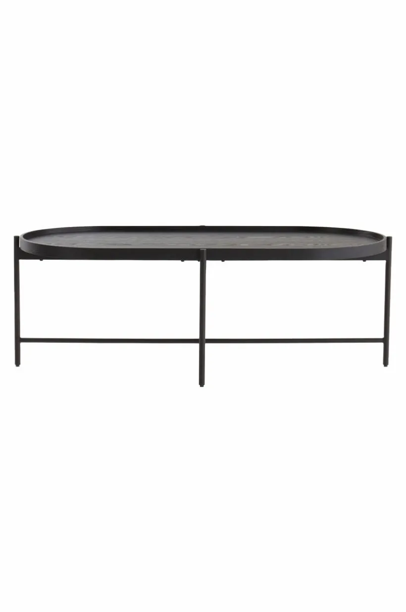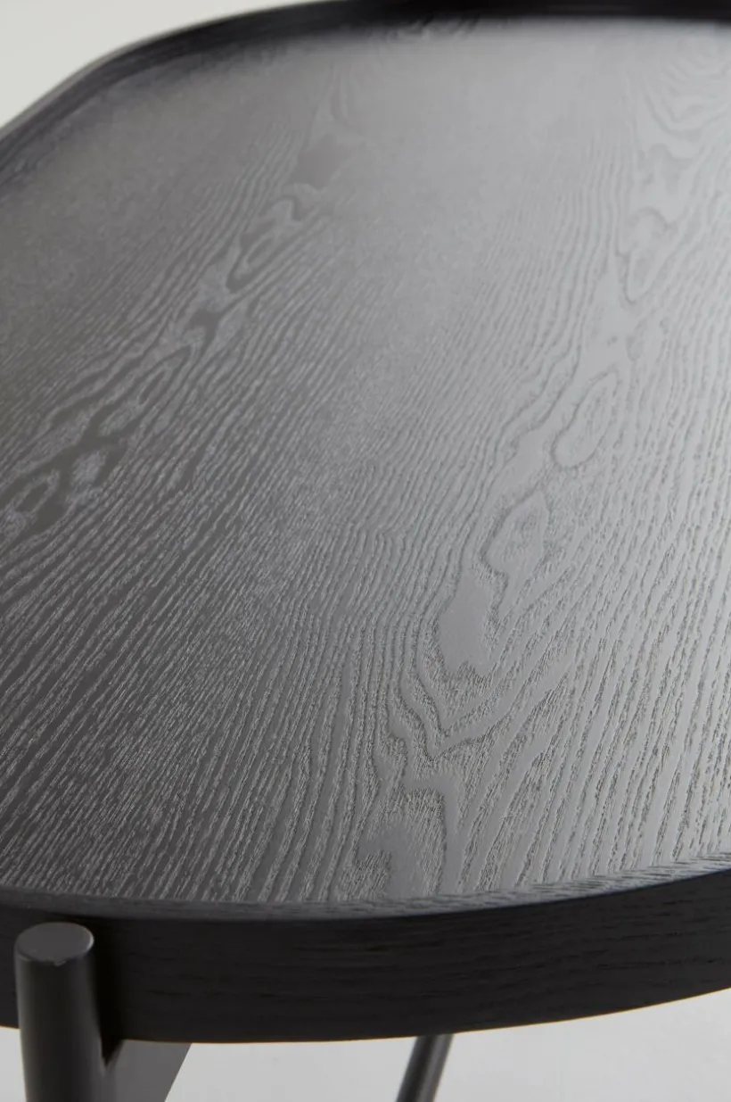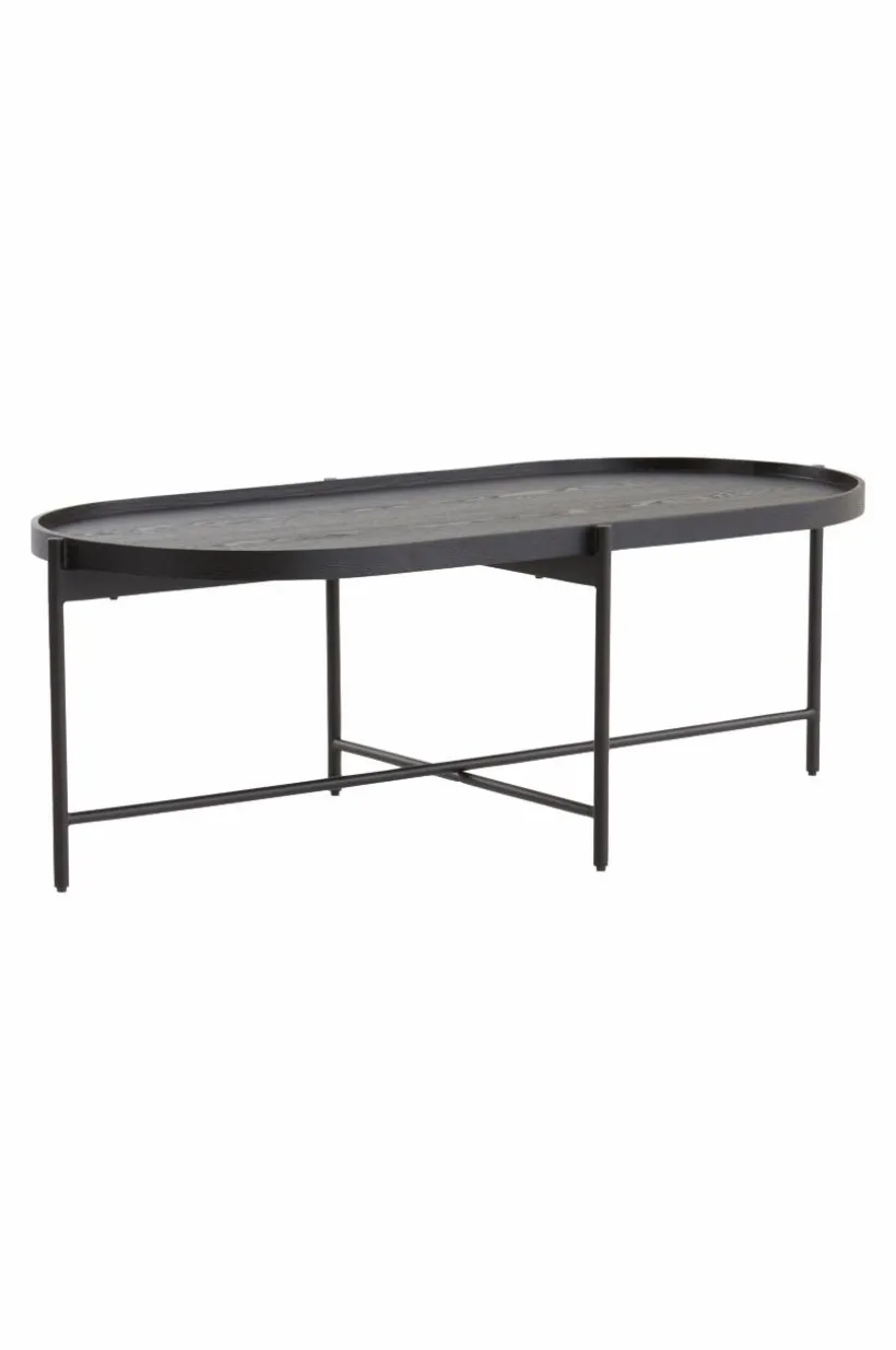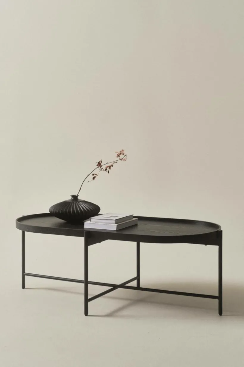 Ovalt soffbord med ben av stål och bordsskiva av FSC-certifierad MDF med askfaner. Bordsskivan har en liten kant runt om som snygg detalj. Den har svart, lackerad ytfinish och ådringen är snyggt diskret. Underredet är pulverlackerat och det omsluter bordsskivan på utsidan, så känslan av att bordsskivan vilar i underredet förstärks. RENO är ett lättplacerat soffbord som smälter in på ett behagligt sätt. Den mjuka, ovala formen gör det lätt att passera runt bordet och slå sig ner i soffan. Viss montering krävs. Monteringsanvisning medföljer.
