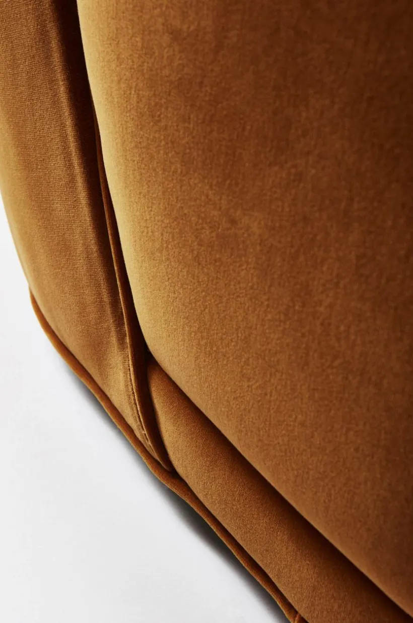 Inget vardagsrum är komplett utan en fåtölj i sammet. RICHMONDS skönhet, inbjudande runda former och fantastisk sittkomfort blir snabbt en favorit i ditt hem. Fåtöljen är lika snygg i grupp runt ett bord som solitär i ett sovrum. RICHMOND har en smakfull dos av retro kombinerat med modern touch, ett bra val. RICHMOND fåtölj har en stabil stomme av furuträ och playwood med god sittkomfort tack vare sin fantastiska uppbyggnad av kallskum, zickzackfjädring, resårband samt den sköna polyesterstoppningen. Sammetstyget är av 90% bomull, 10% polyester.