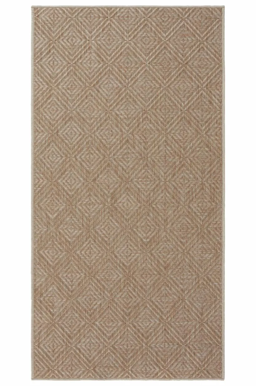 Slätvävd, vändbar matta av polypropylen som är ett tåligt material och passar både ute och inne. Mattan har diskret randmönster på ena sidan och rutmönster som påminner om det klassiska mönstret gåsöga på den andra sidan. Du kan alltså vända den sidan upp som passar bäst. Mattan är vävd i mjuka nyanser med melerad effekt . RINO är en praktisk matta som passar lika bra inomhus som utomhus. Mattan gör sig utmärkt på balkongen eller altanen, i tvättstugan och köket. Din balkong får skön rumskänsla med mattor på golvet. Tjocklek: 0,5 cm. 1850 g/m².