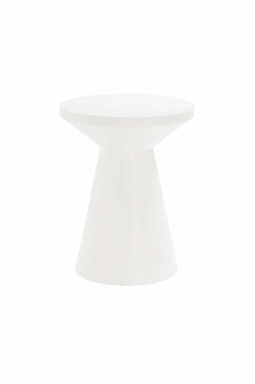 Beskrivning: Rund pall/sidobord av målat mangoträ.