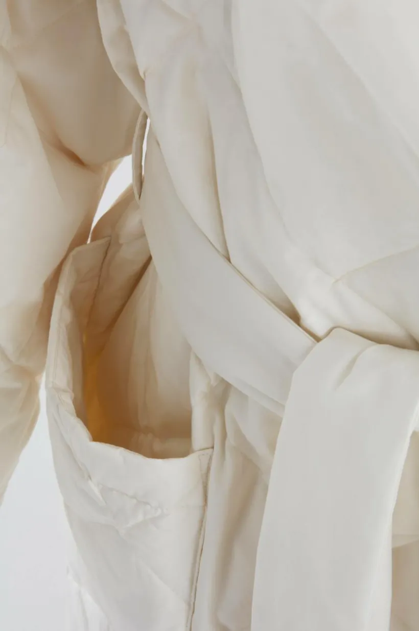 Badrock som har en härligt varm dunfyllning, yttertyget är en mjuk percale av bomull. Modellen är mysig, lite längre med rymlig passform, knytskärp i midjan, två fickor och en stor huva. Badrocken är rutquiltad, en snygg detalj samtidigt som fyllningen hålls på plats. ROBYN är härlig både som badrock och som morgonrock, särskilt om du är lite frusen. Längd mitt bak i storlek medium 120 cm.