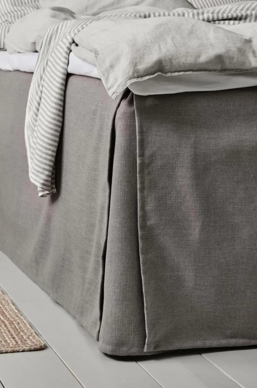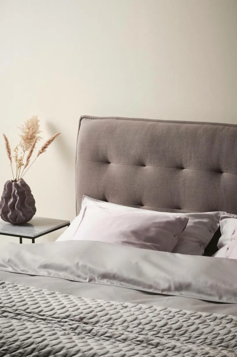 Sänggavel med tyg av lin och polyester som har en skön linnekänsla. Stommen är tillverkad i FSC-certifierat massivt trä och plywood. Den inbjudande sänggaveln har mjuk, tjock vaddering med dekorativa, djuphäftade knappar och en liten vinge runtom. Klädseln har Martindale på 30000. ROSARIO blir ett bekvämt ryggstöd om du vill ta morgonkaffet sittandes i sängen. Den fristående sänggaveln placeras mellan resårmadrassen och väggen. Väggfäste medföljer.