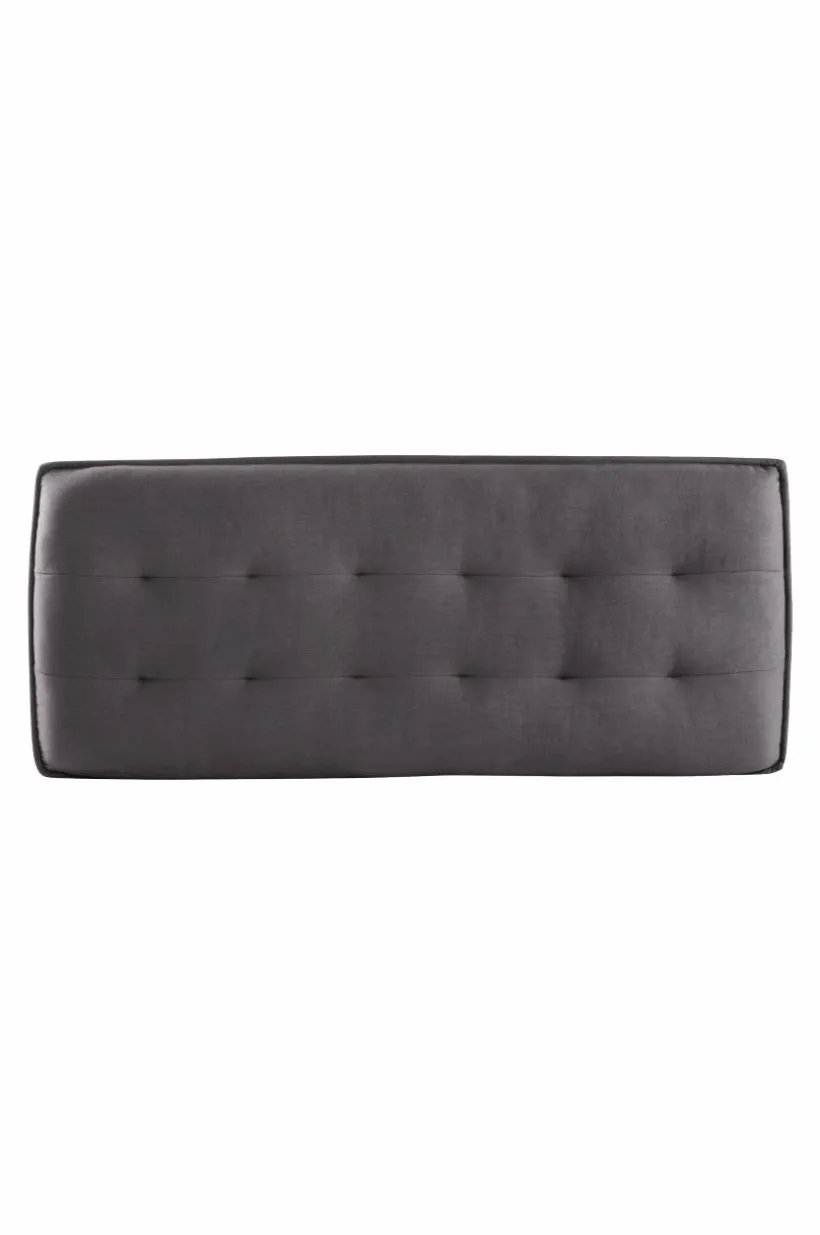 Sänggavel med tyg av lin och polyester som har en skön linnekänsla. Stommen är tillverkad i FSC-certifierat massivt trä och plywood. Den inbjudande sänggaveln har mjuk, tjock vaddering med dekorativa, djuphäftade knappar och en liten vinge runtom. Klädseln har Martindale på 30000. ROSARIO blir ett bekvämt ryggstöd om du vill ta morgonkaffet sittandes i sängen. Den fristående sänggaveln placeras mellan resårmadrassen och väggen. Väggfäste medföljer.