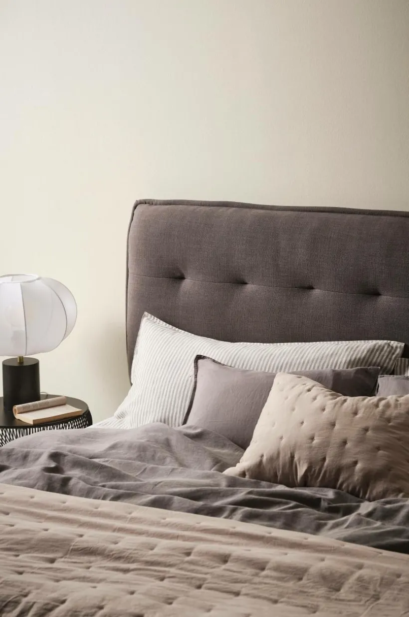 Sänggavel med tyg av lin och polyester som har en skön linnekänsla. Stommen är tillverkad i FSC-certifierat massivt trä och plywood. Den inbjudande sänggaveln har mjuk, tjock vaddering med dekorativa, djuphäftade knappar och en liten vinge runtom. Klädseln är slitstark med Martindale på 30000. ROSARIO blir ett bekvämt ryggstöd om du vill ta morgonkaffet sittandes i sängen. Den fristående sänggaveln placeras mellan resårmadrassen och väggen. Väggfäste medföljer.