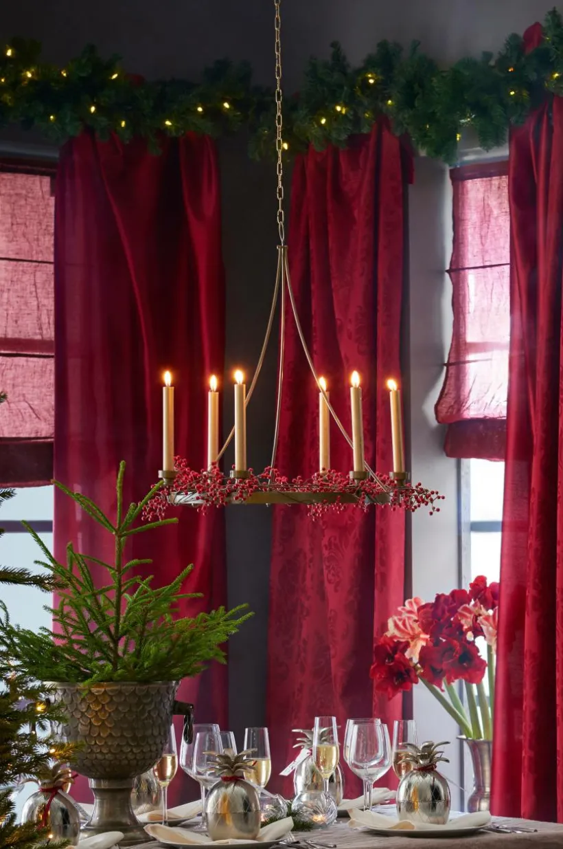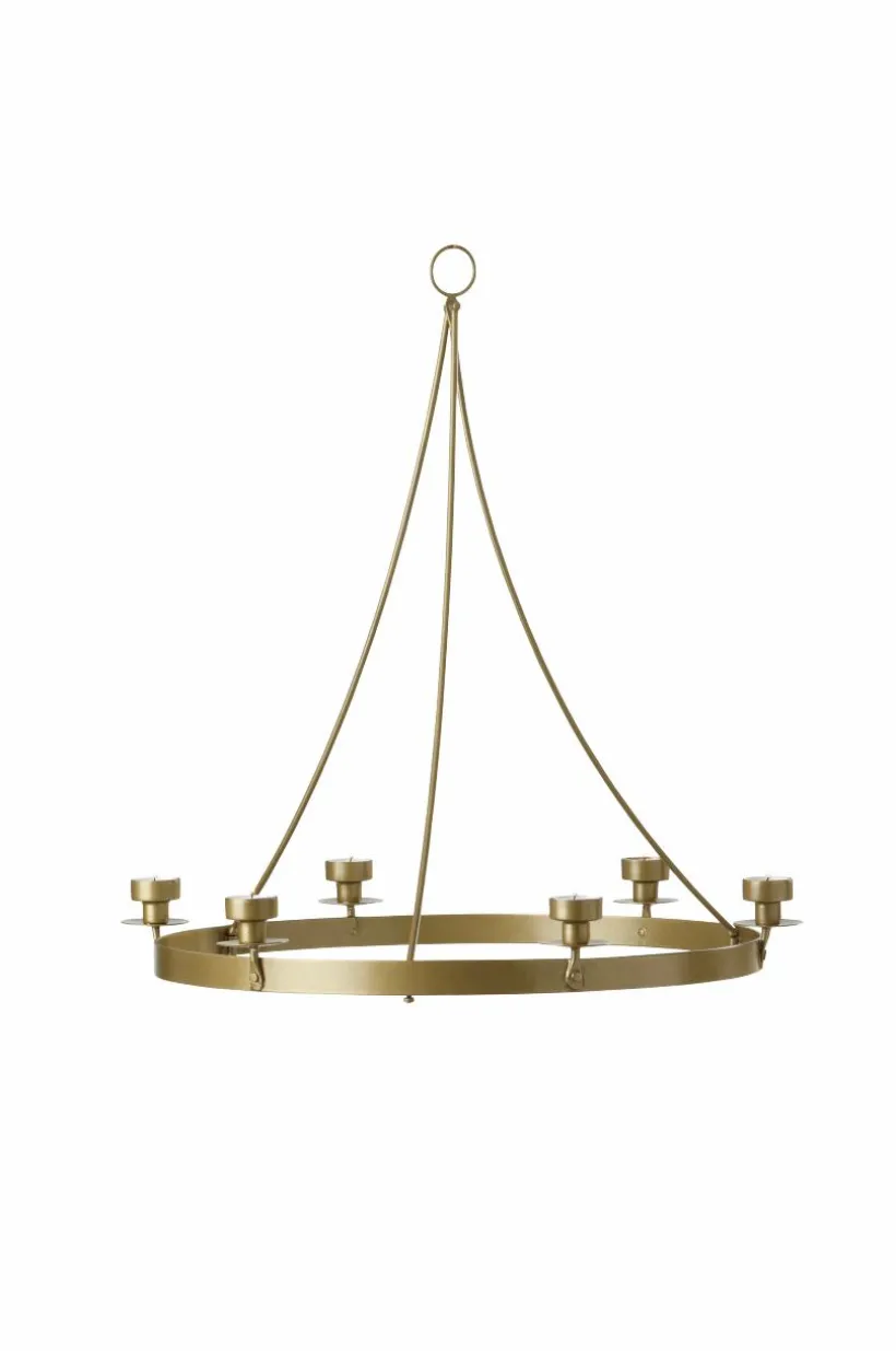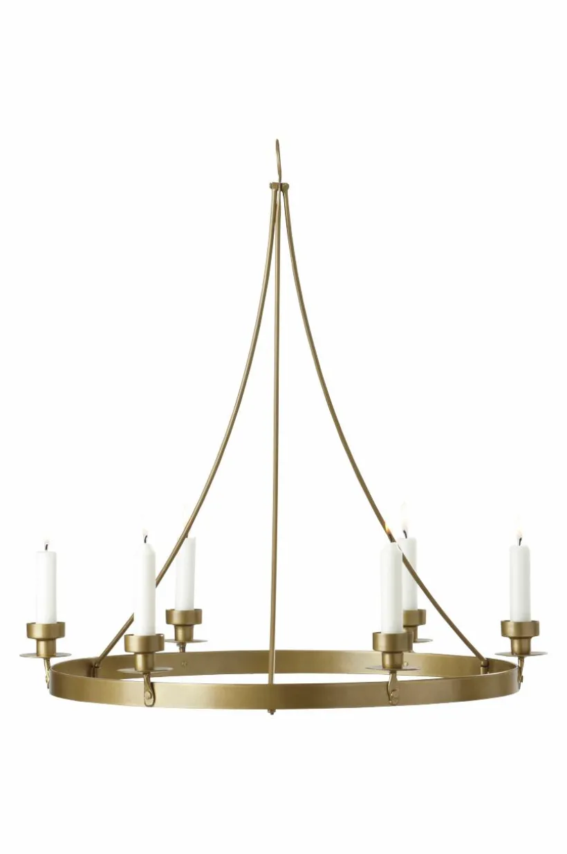 Ljuskrona av pulverlackad metall med 6 st ljushållare för ljus eller värmeljus. En stilren takljuskrona som förgyller din matsalsplats. Med enkla medel blir den extra dekorativ till årets olika middagar, grankvistar till jul, blommor till midsommar eller eukalyptuskvistar som är fina året om.