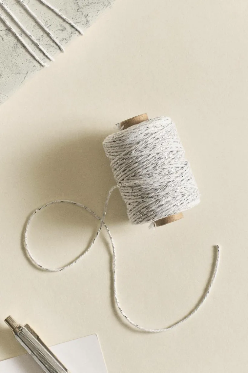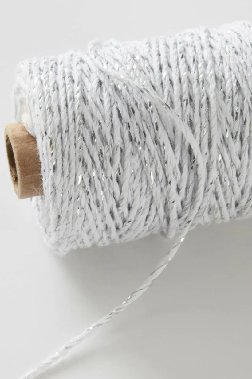 Tvinnat bomullssnöre med inslag av metall som glittrar fint. Snöret passar att dekorera presenter och julklappar med och du kan också använda det när du knyter fast ett litet kort i en blombukett eller krukväxt.