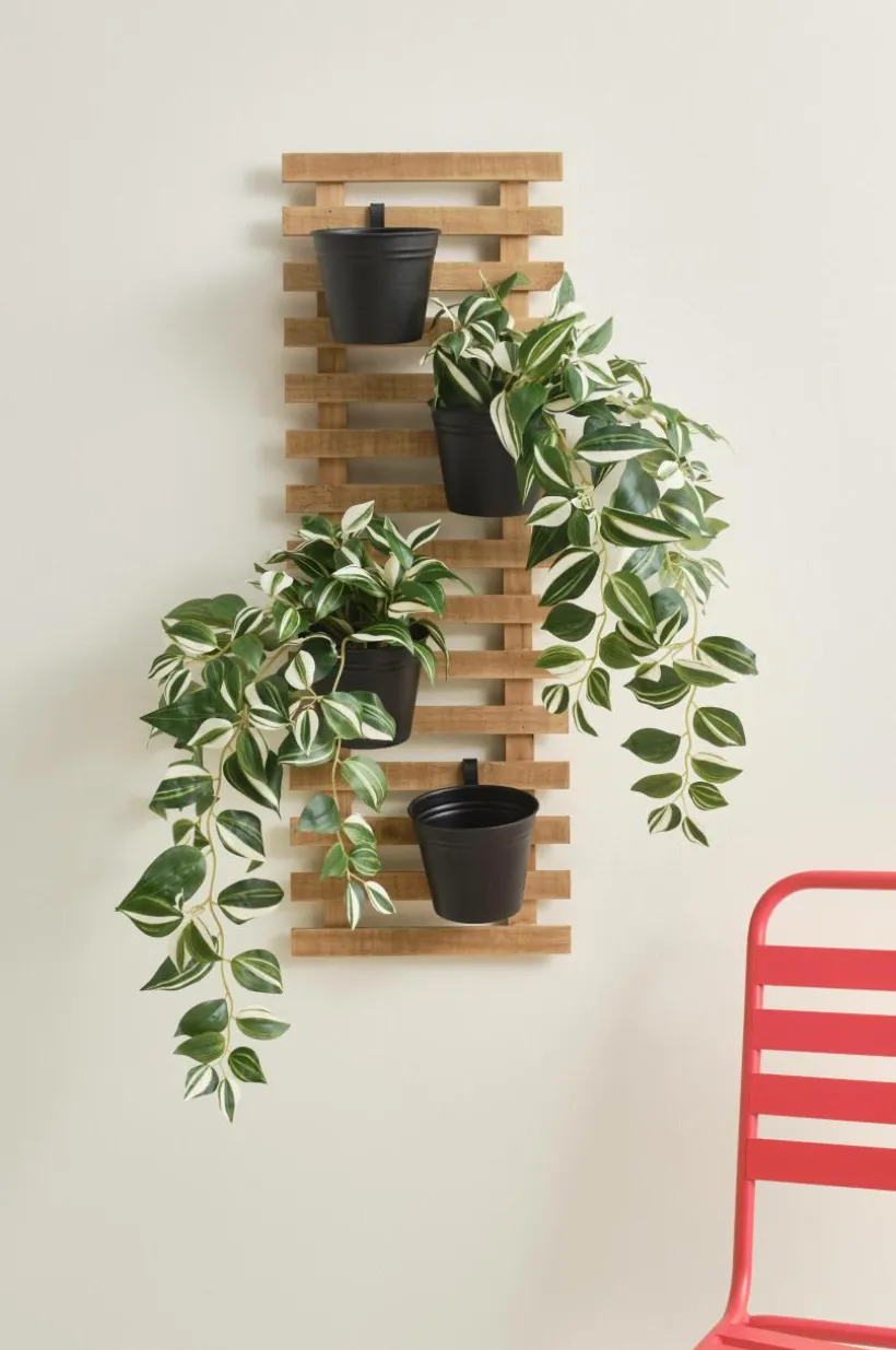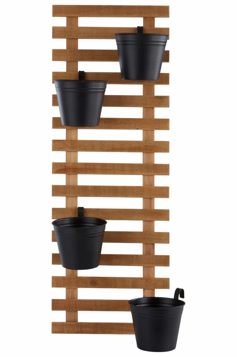 ROSMARY är en handgjord blomställning av granträ med fyra blomkrukor av järn. ROSMARY är vägghängd och kan placeras både utomhus och inomhus. Varje blomkruka har en hängare så du kan hänga den på valfri plats på ställningen. Tänk på att järn får patina och rostar över tid. Blir det en skråma i lacken påskyndas processen.