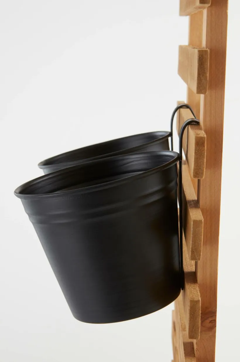 Material: Ställning: Gran. Blomkrukor: Järn.