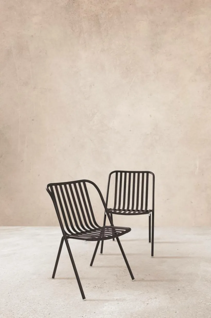 2-pack utestolar av pulverlackerad aluminium. Ytbehandlingen är matt och bländar inte i starkt ljus. ROYAN är en stol i klassisk design med skön retrokänsla. Aluminium har bra egenskaper som gör att dessa möbler passar utmärkt utomhus, det rostar inte och vikten är låg. Stolen gör sig också bra inomhus. Stolarna är stapelbara vilket förenklar vinterförvaringen. Förvara gärna möblerna inomhus under vinterhalvåret för att undvika onödigt slitage.