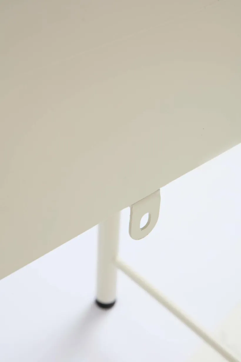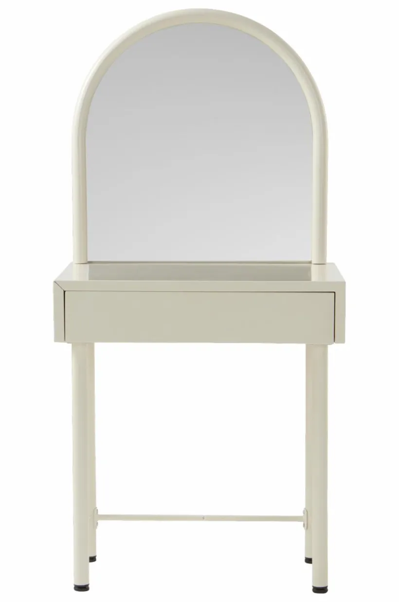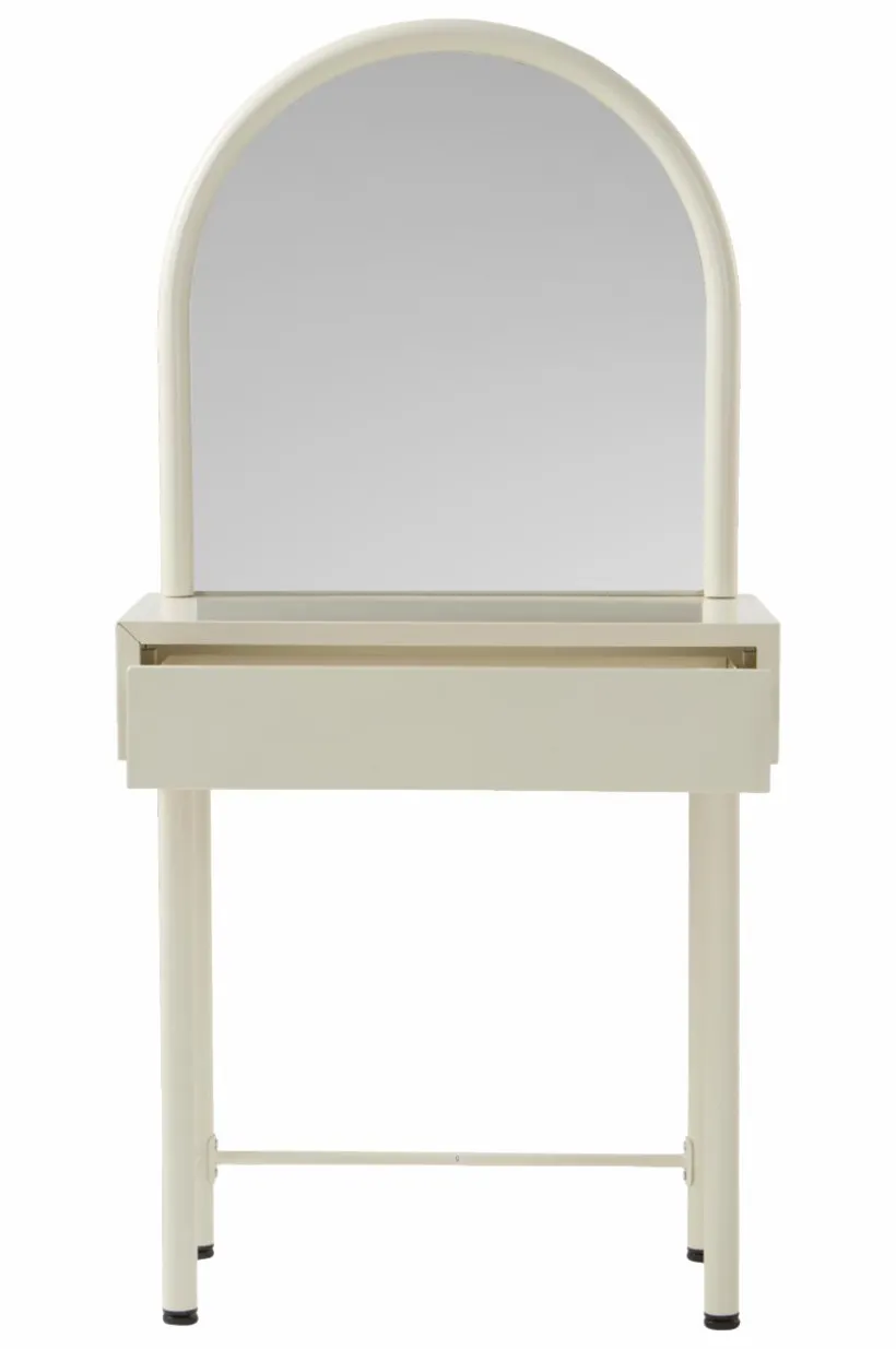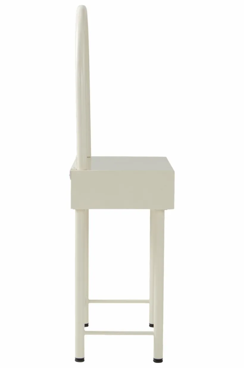 RUE sminkbord är ett charmigt tillskott till alla barnrum och kombinerar stil och funktionalitet. Det har en elegant metallram med en hållbar pulverlackerad yta och en enkel men elegant design. Den integrerade spegeln och den praktiska lådan gör det enkelt att organisera tillbehören. Det här bordet är perfekt för unga modeentusiaster och gör det till en härlig upplevelse att göra sig i ordning på morgonen och ger de dagliga rutinerna en praktisk och elegant känsla.