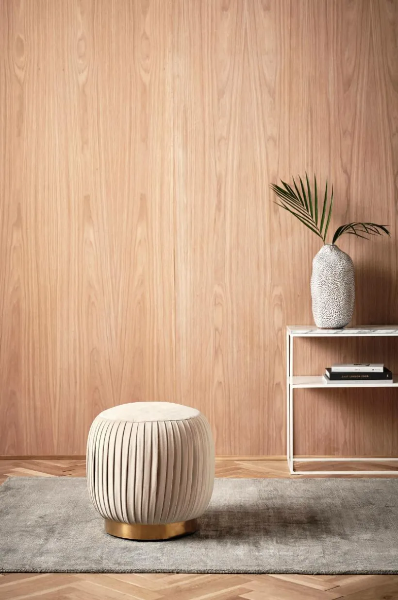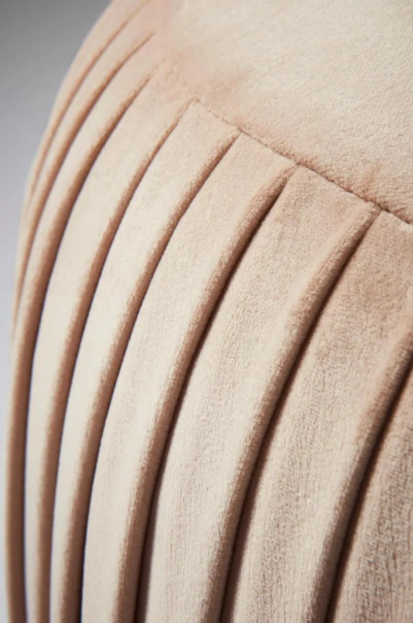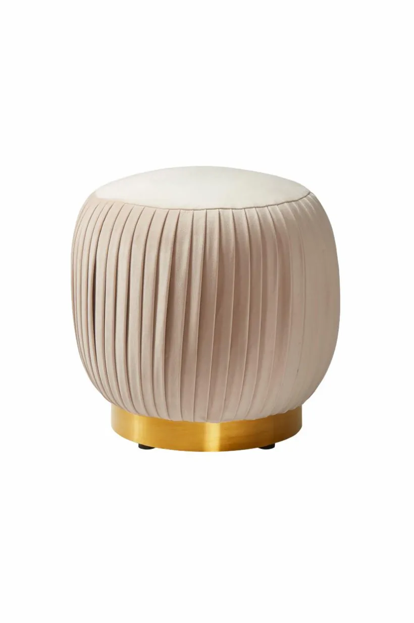 Sittpuff med fast klädsel av sammet och dekorativ kant av mässing. Skapa eleganta färgklickar i rummet med vår nätta sittpuff i sammet och mässingsdetaljer. Tygets slitstyrka är på 28000 Martindale.