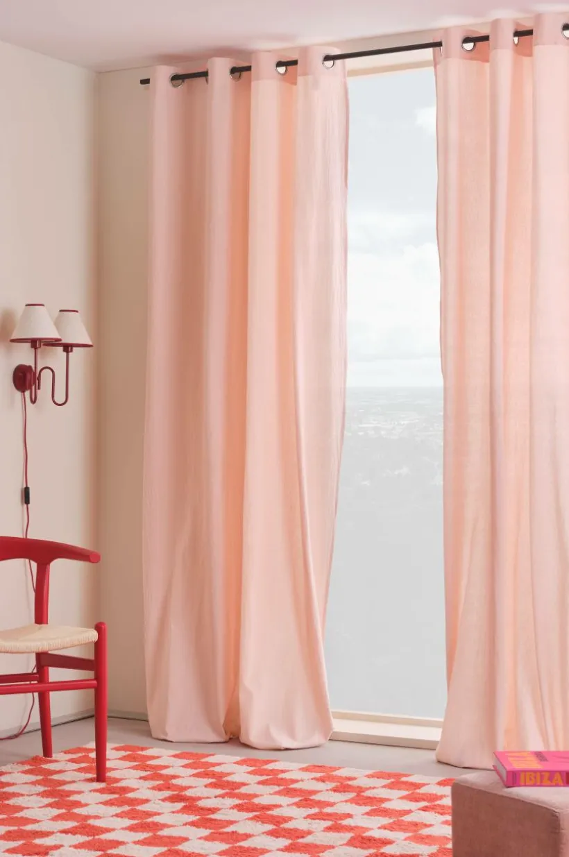 2-pack enfärgade öljettlängder av följsam bomull i mjuka, mustiga nyanser. 8 st metallöljetter per längd. Träs enkelt på en gardinstång. Enfärgade gardiner ger stor frihet när du matchar och det är snyggt att blanda upp med andra mönster och färger om du vill.