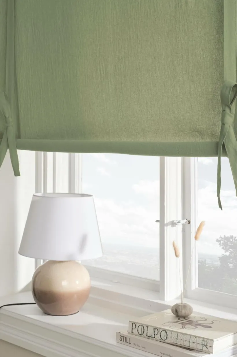 Roll up-gardin av följsam bomull i mjuka, mustiga nyanser. Roll up-gardinen justeras enkelt efter dina önskemål om insyn. Hängs på vanlig gardinstång. Höjden regleras med knytband. Enfärgat ger stor frihet när du matchar och det är snyggt att blanda upp med andra mönster och färger om du vill.