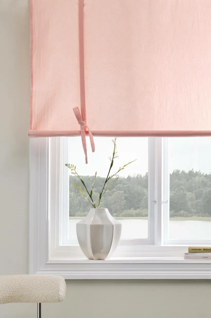 Roll up-gardin av följsam bomull i mjuka, mustiga nyanser. Roll up-gardinen justeras enkelt efter dina önskemål om insyn. Hängs på vanlig gardinstång. Höjden regleras med knytband. Enfärgat ger stor frihet när du matchar och det är snyggt att blanda upp med andra mönster och färger om du vill.