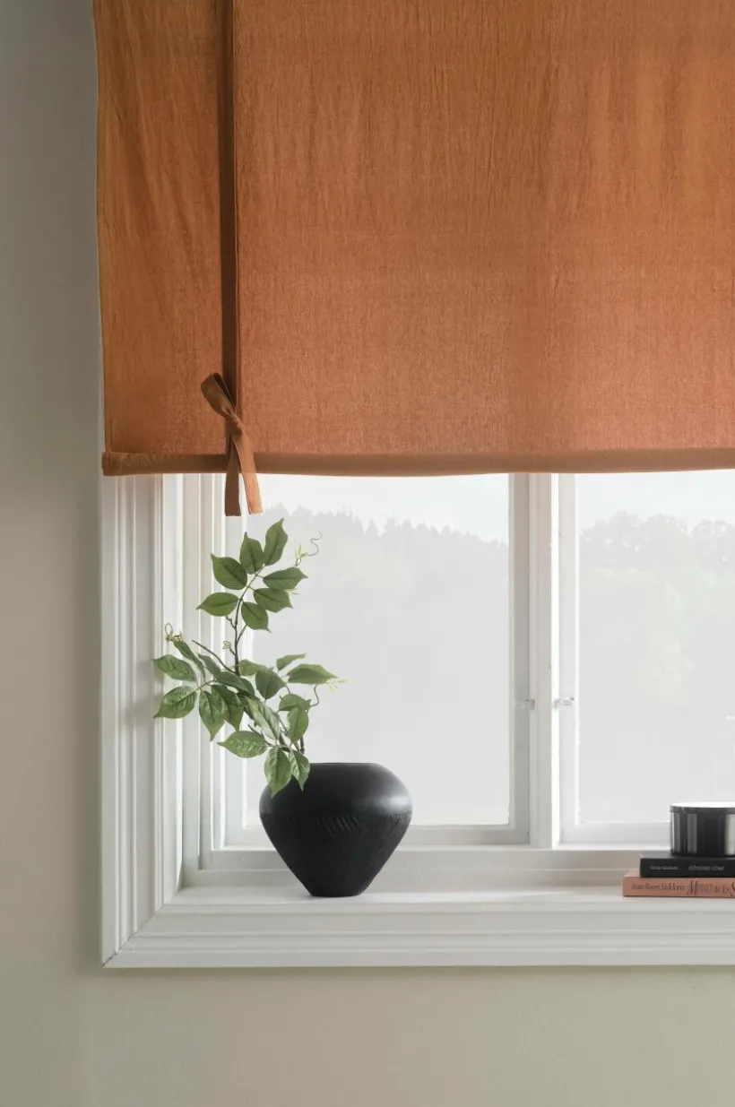 Roll up-gardin av följsam bomull i mjuka, mustiga nyanser. Roll up-gardinen justeras enkelt efter dina önskemål om insyn. Hängs på vanlig gardinstång. Höjden regleras med knytband. Enfärgat ger stor frihet när du matchar och det är snyggt att blanda upp med andra mönster och färger om du vill.