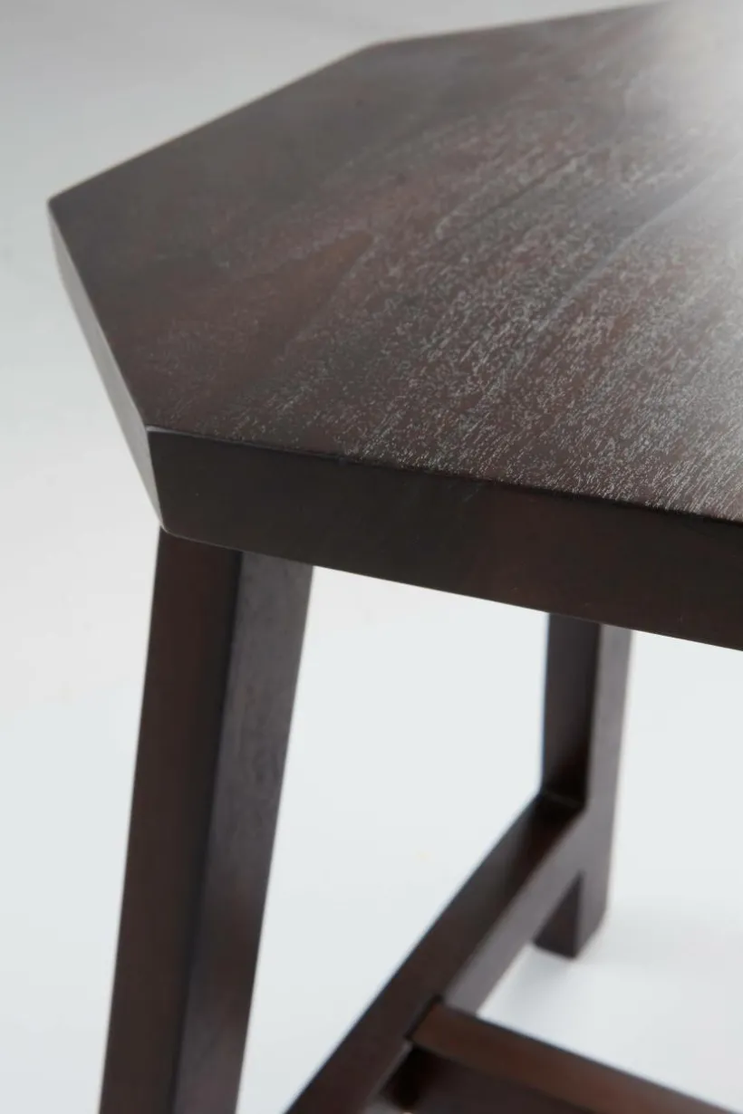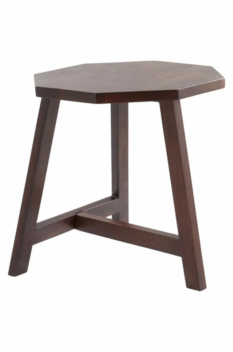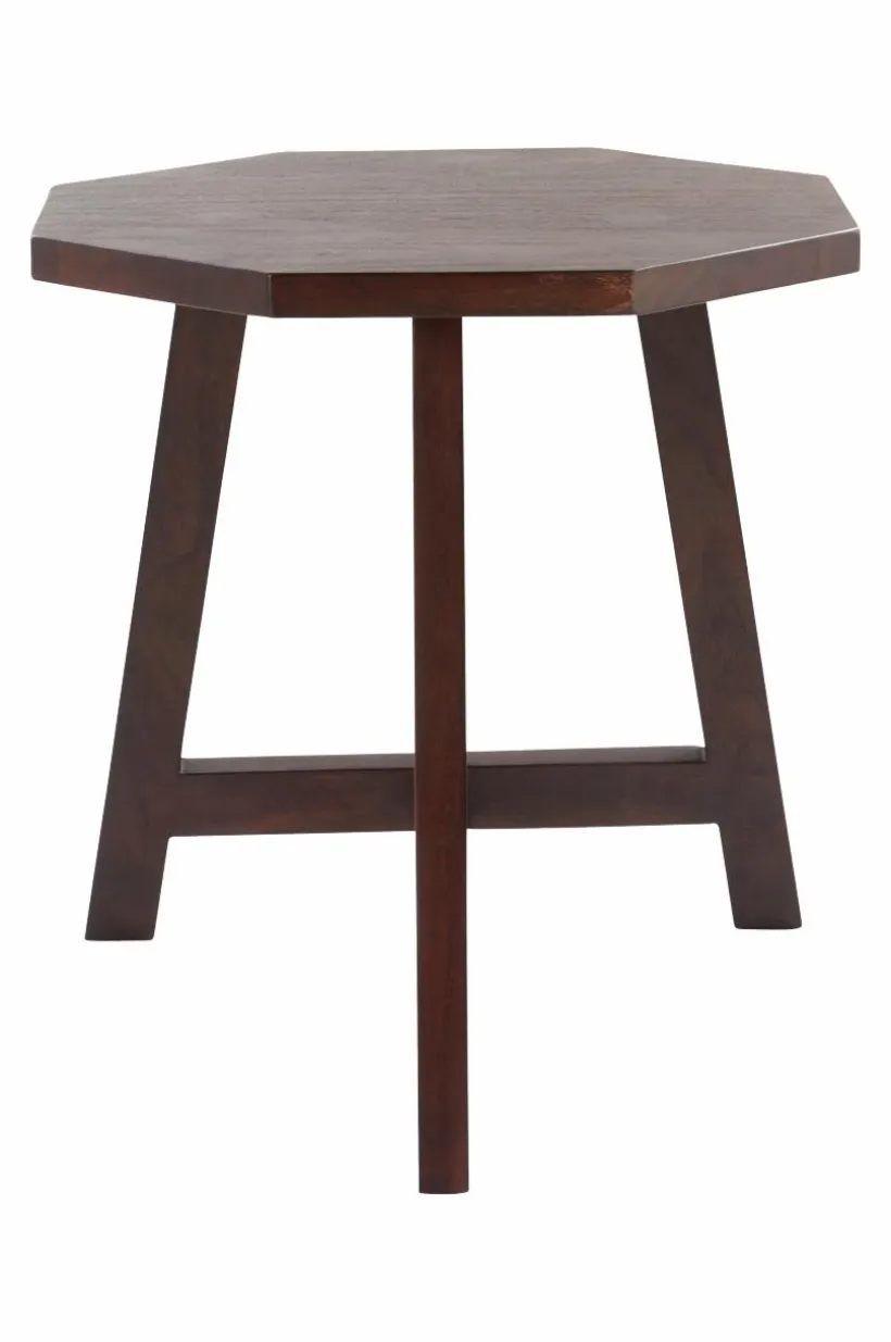 SALI är ett sidobord av massivt mangoträ med en mörk ytbehandling som ger träet en bränd känsla samtidigt som ådringen bibehålls. Det lilla bordet har åttakantig bordsskiva och tre ben i spännande konstruktion som gör bordet speciellt. Viss montering krävs. Monteringsanvisning medföljer.