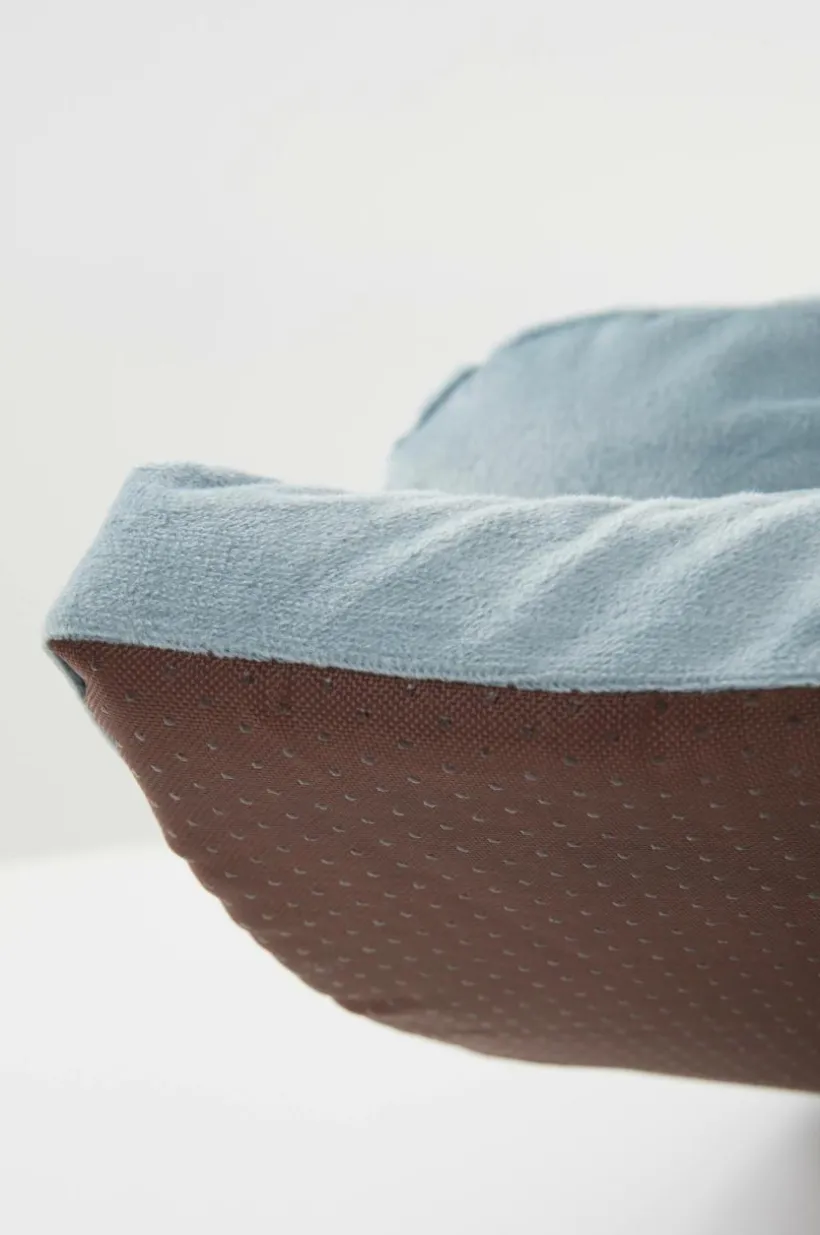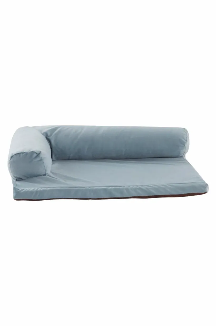 Skön hundbädd med klädsel av polyester och mjuk fyllning av polyestervadd. Botten är av skumgummi. Den mjuka kanten som går runt två sidor är vadderad och ger efter bekvämt och formar sig skönt när din hund eller katt kryper upp i hörnet samtidigt som två öppna sidor ger plats att sträcka ut sig. SAM upplevs som lagom var för varma hundar. SAM passar förstås också bra som kattbädd.