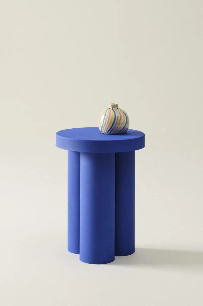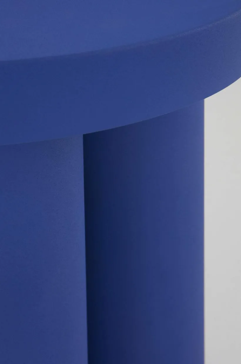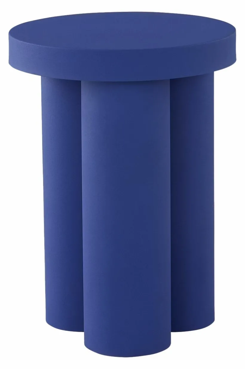Sidobord av järn med pelarfot som består av tre runda rör tillsammans och på det en rund bordsskiva som kombinerats med snygga proportioner. Bordet är helt enfärgat och ytan har pulverlackerats med matt finish. Sidobordet skapar en lättsam och lekfull känsla i rummet.