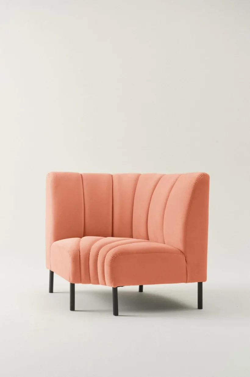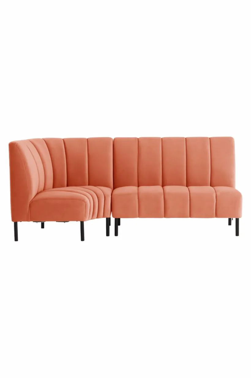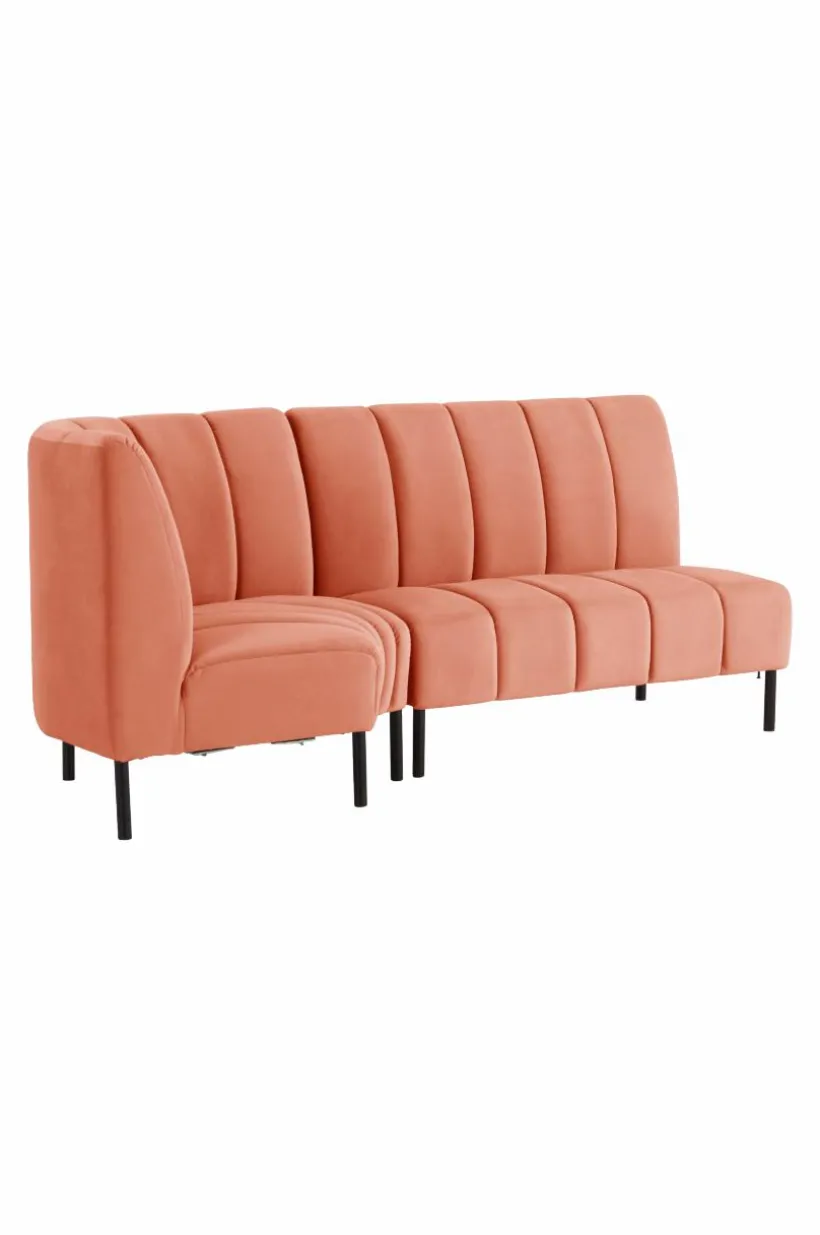 Den snygga sammetsklädslen är av återvunnen polyester med slitstyrka på 40000 Martindale. Stommen är av plywood och furu, allt trä är FSC-certifierat. Soffan har zickzackfjädring som kombinerats med skum och polyestervaddering för att bli extra skön att sitta i. De runda benen är av metall med svart pulverlack. Om du köper flera moduler byggs de ihop med metallfästen som medföljer. Klädseln är ej avtagbar. Viss montering krävs. Monteringsanvisning medföljer.