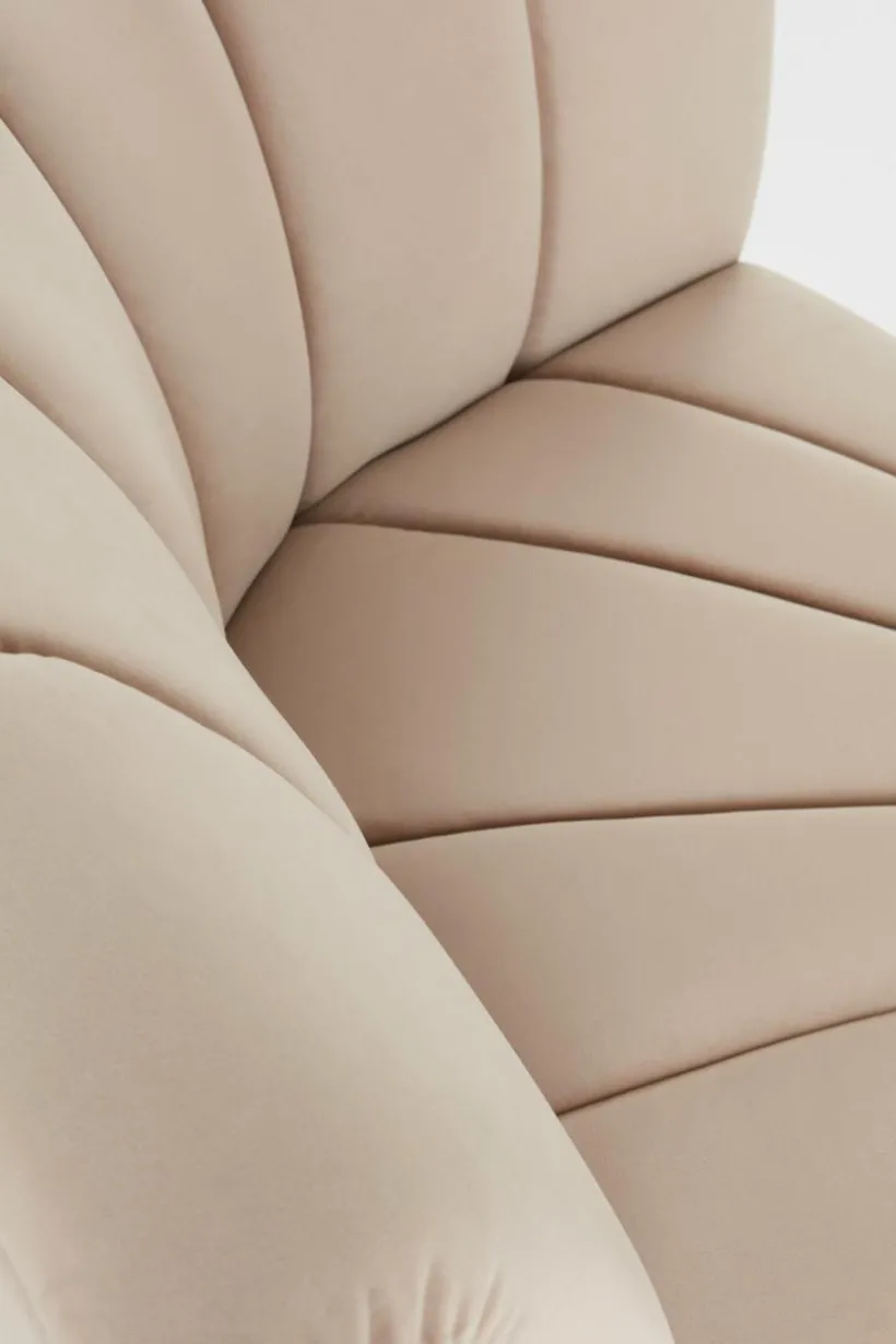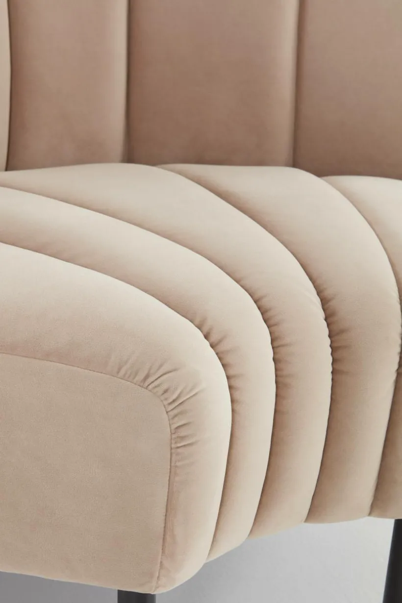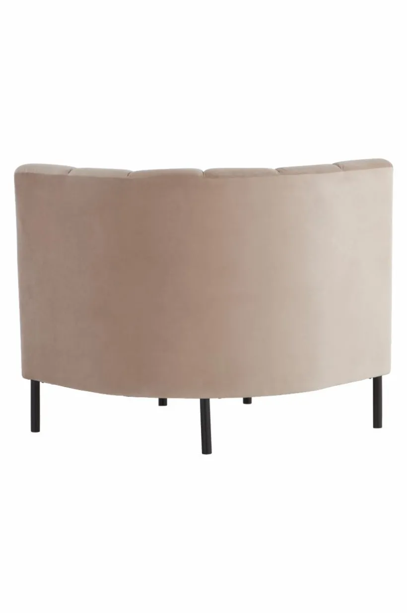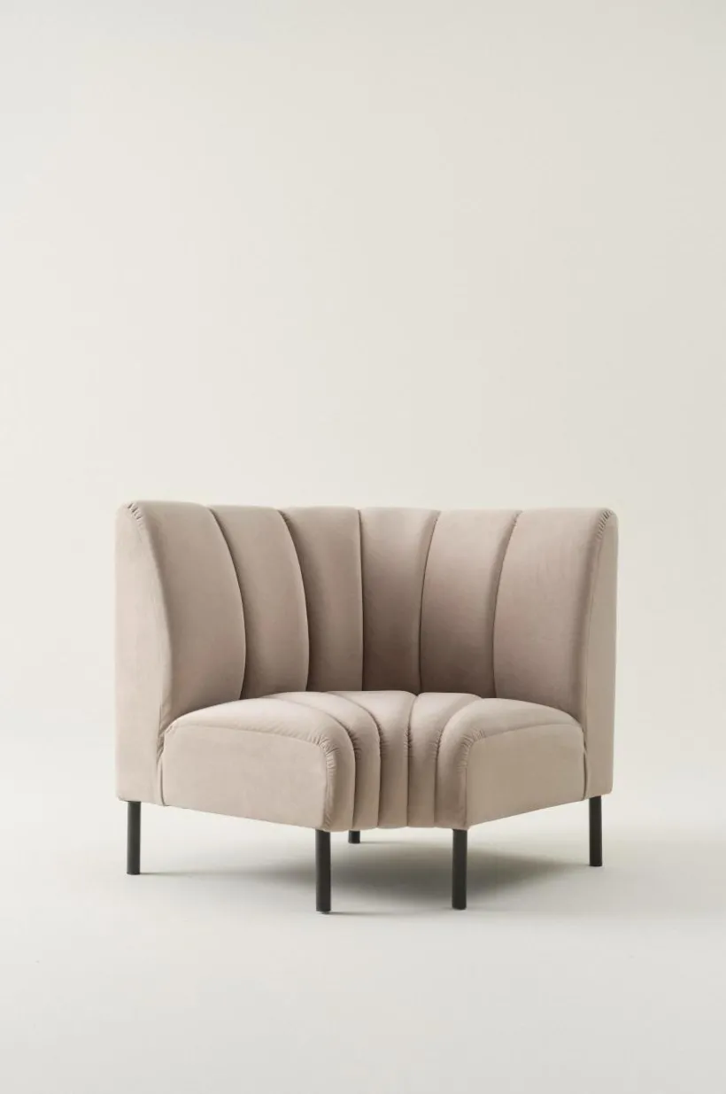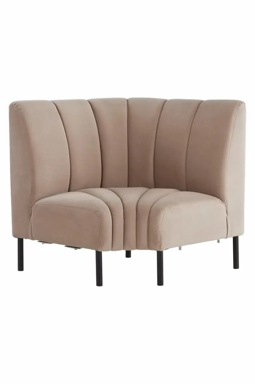 Den snygga sammetsklädslen är av återvunnen polyester med slitstyrka på 40000 Martindale. Stommen är av plywood och furu, allt trä är FSC-certifierat. Soffan har zickzackfjädring som kombinerats med skum och polyestervaddering för att bli extra skön att sitta i. De runda benen är av metall med svart pulverlack. Om du köper flera moduler byggs de ihop med metallfästen som medföljer. Klädseln är ej avtagbar. Viss montering krävs. Monteringsanvisning medföljer.