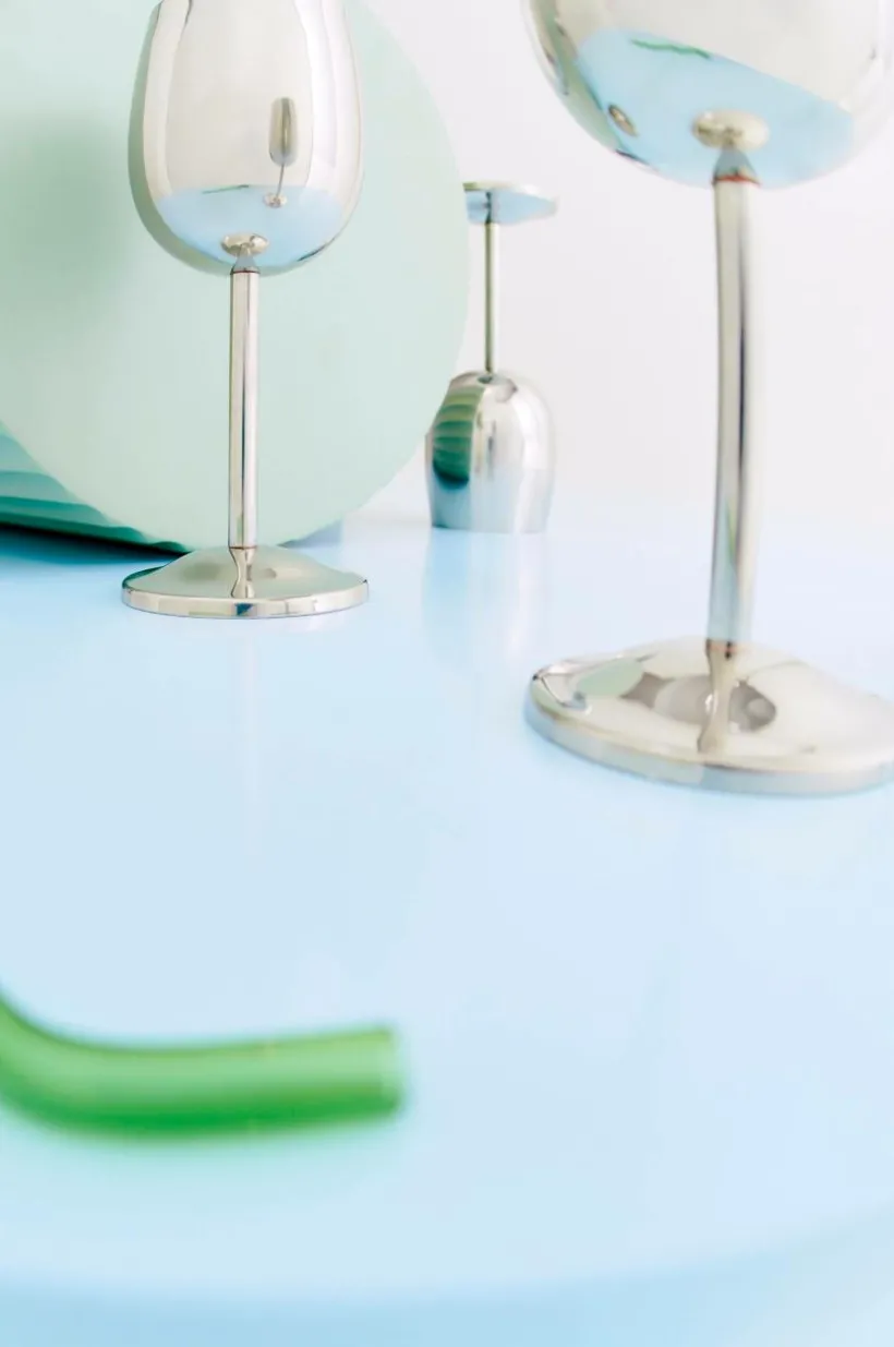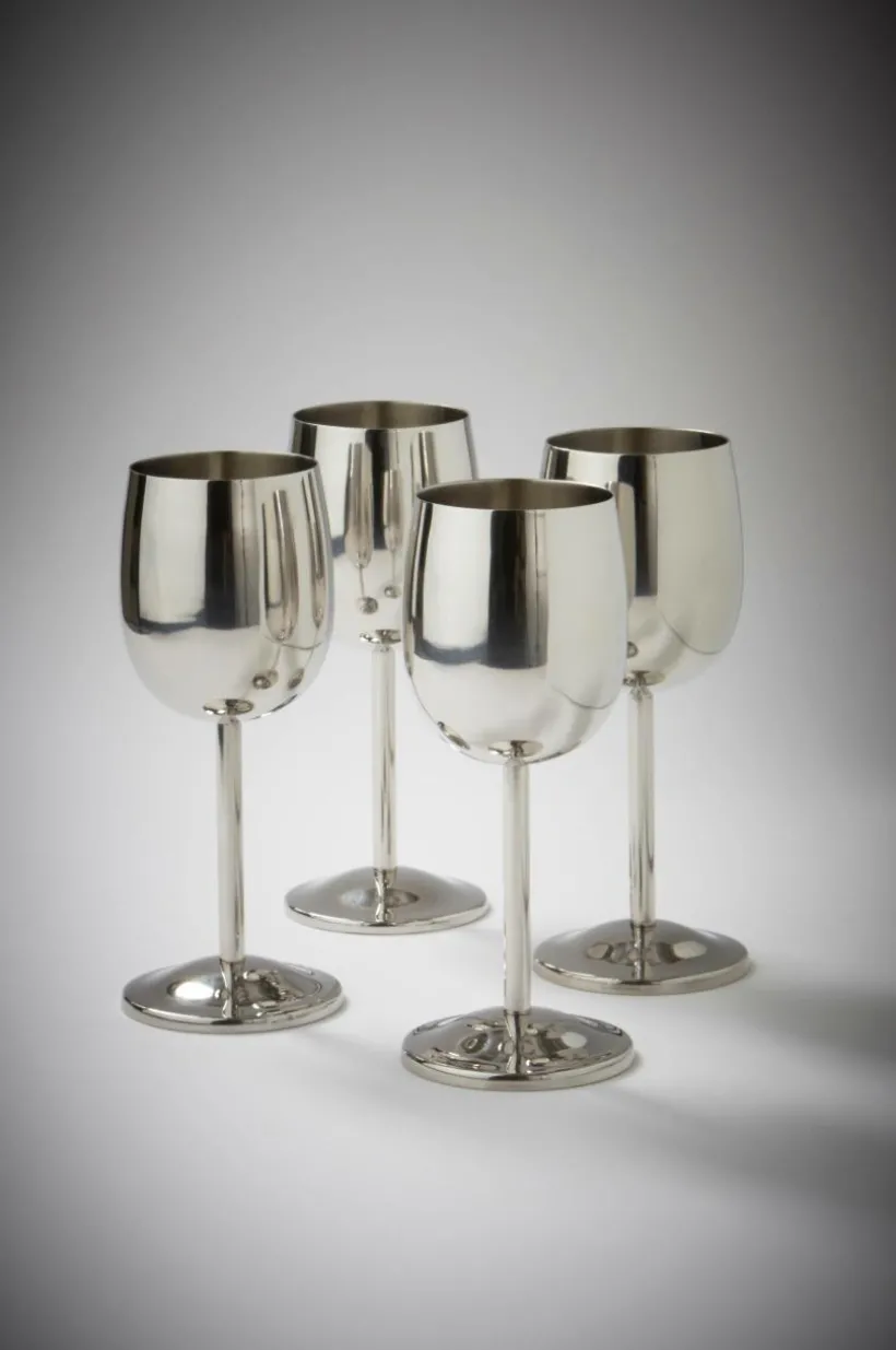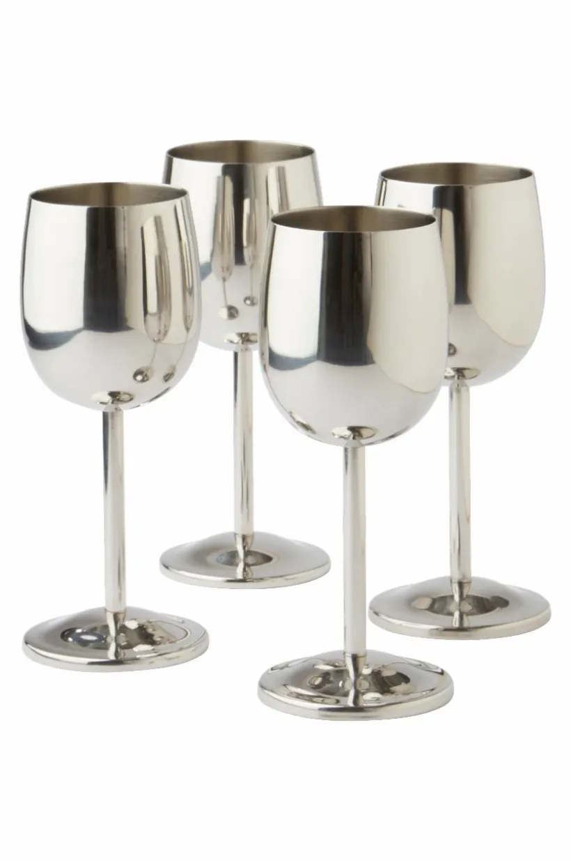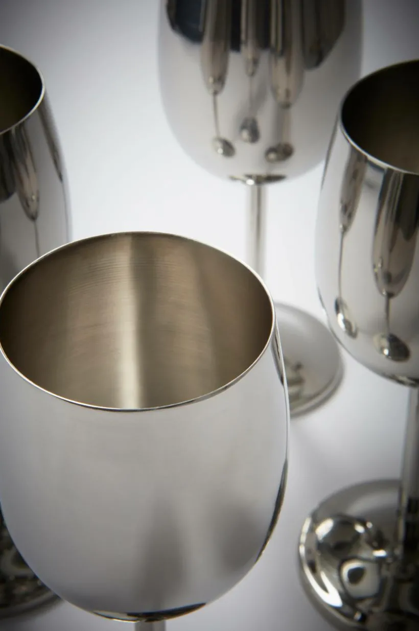 4-pack vinglas av rostfritt stål med högblank finish. De festliga vinglasen gör din bjudning extra festlig. SARAI har dessutom den stora fördelen att inte sprida glasflisor när någon råkar tappa ett glas.