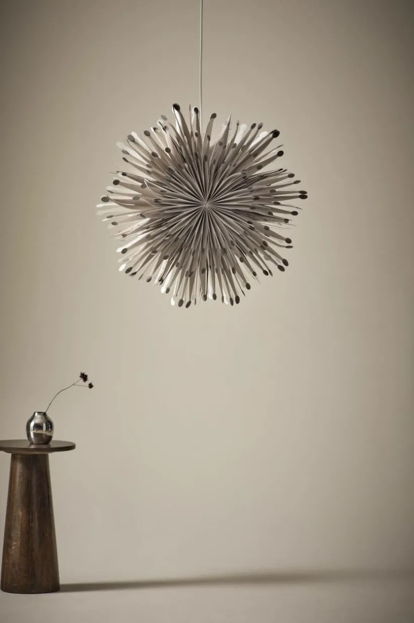 Julstjärna av papper. SARGAS är en stor och vacker julstjärna som sprider stämning och lyser upp i vintermörkret. Lamphållare med vit plastsladd ingår. Viss montering krävs. Monteringsanvisning medföljer.