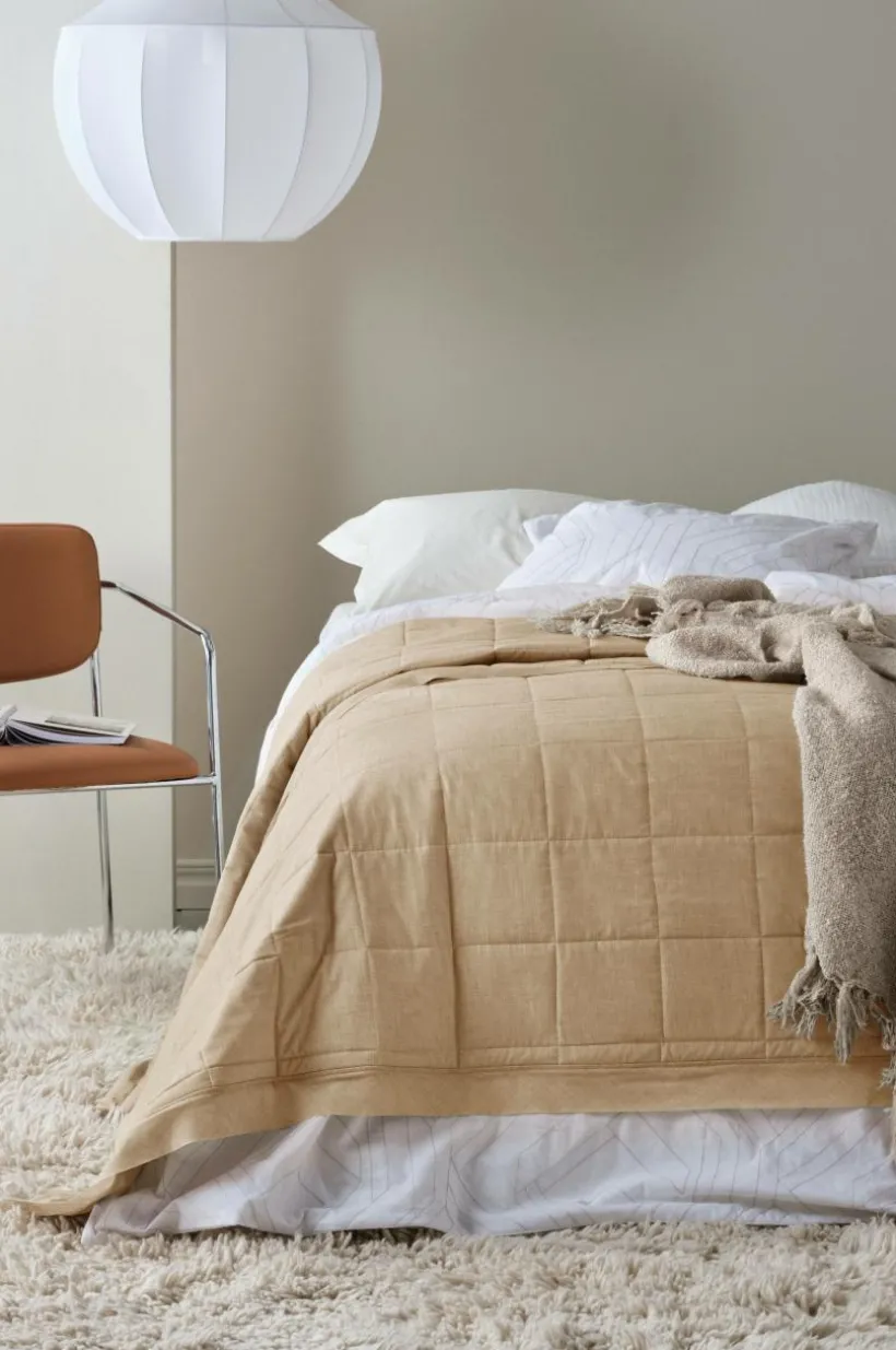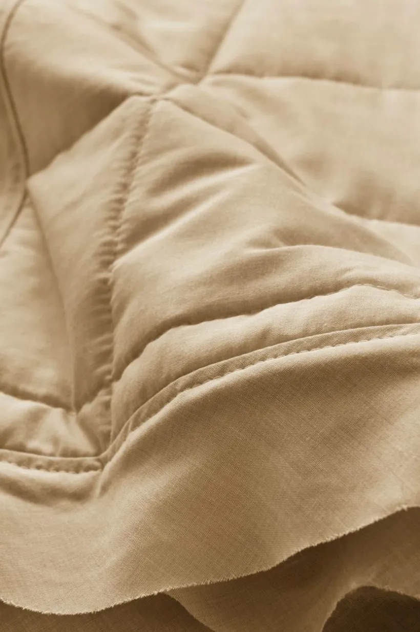 Överkast för dubbelsäng. SENTE är av bomull och polyester och har garnfärgat utseende som ger en mjuk och hemtrevlig känsla. Överkastet är rutquiltat med smidig fyllning av polyester. En tunn, rå kant runt om är detaljen som ger överkastet speciell inramning. Kuddfodral medföljer ej, köps separat.
