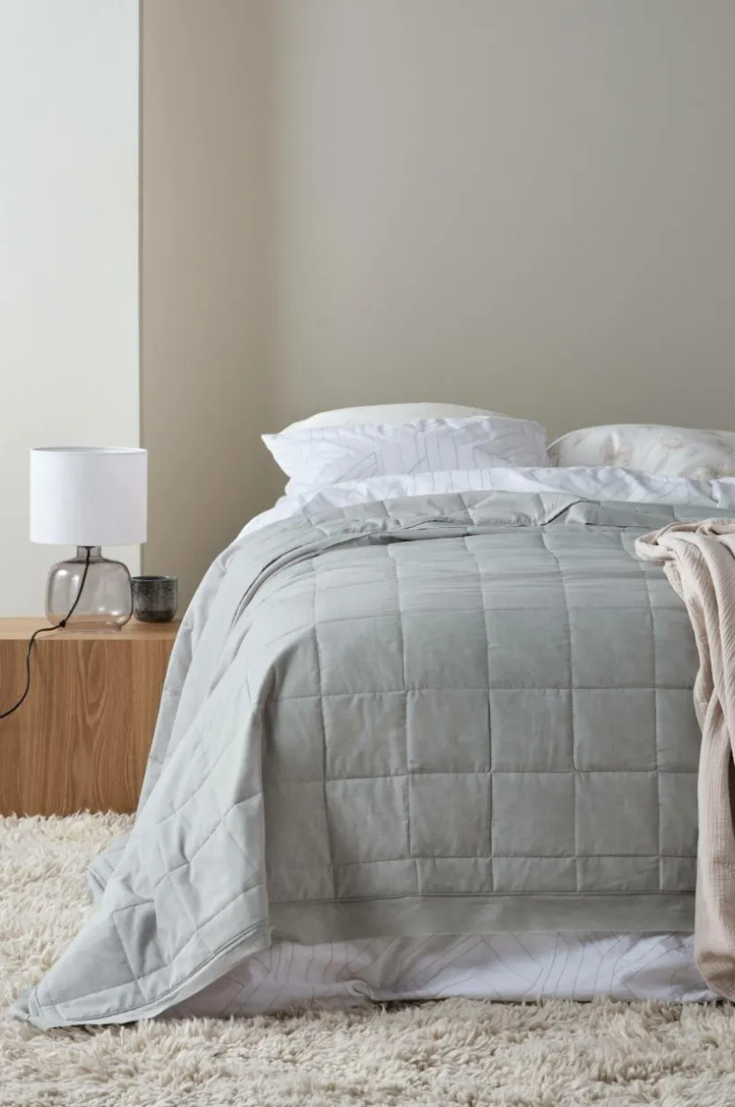 Överkast för dubbelsäng. SENTE är av bomull och polyester och har garnfärgat utseende som ger en mjuk och hemtrevlig känsla. Överkastet är rutquiltat med smidig fyllning av polyester. En tunn, rå kant runt om är detaljen som ger överkastet speciell inramning. Kuddfodral medföljer ej, köps separat.