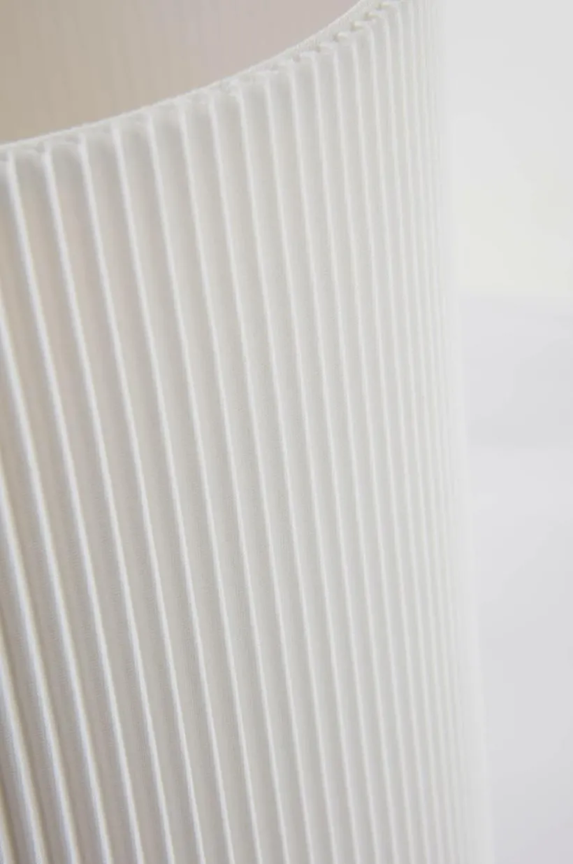 Två bordslampor, varje lampa har en fin, veckad bomullsskärm som sprider ett mjukt sken. Lampfoten är tillverkad av järn. Transparent PVC-kabel med strömbrytare på kabeln. Dessa två lampor är perfekta för att ge elegans till ditt vardagsrum men de passar också bra i din hall, sovrum eller där du behöver lite vacker belysning.