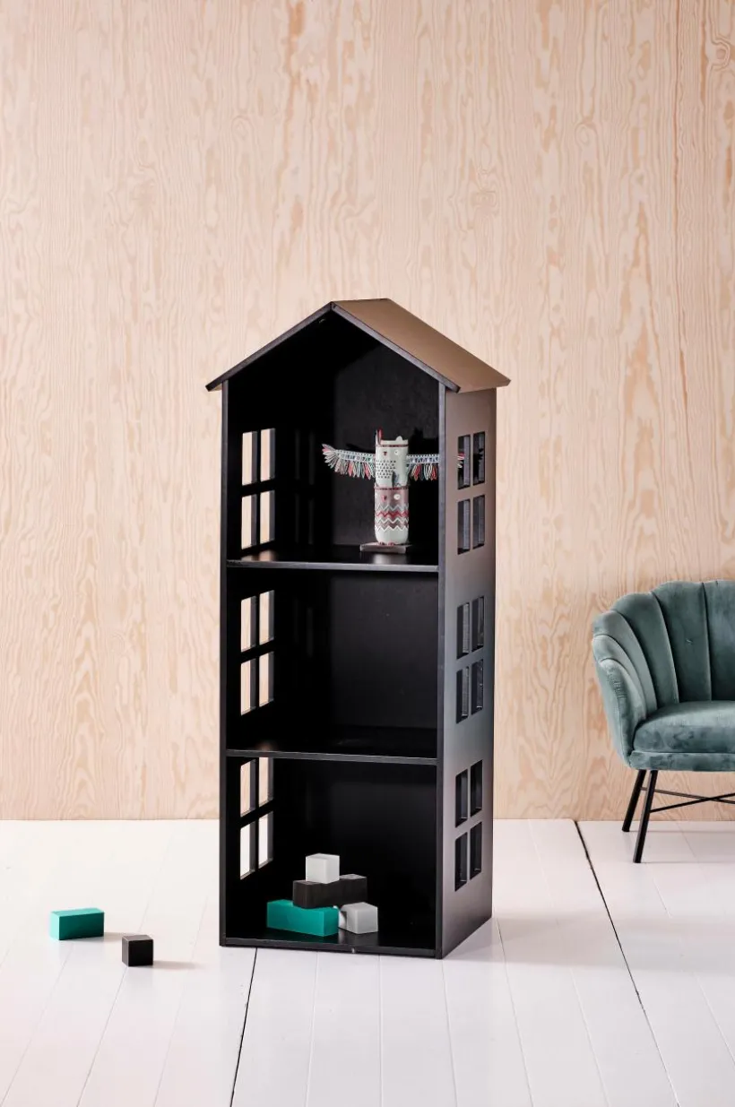 Hylla i målad MDF. SEVILLA är formad som ett våningshus med fönster på sidorna och hyllan är rolig att ha sina favoritböcker, pysselsaker eller leksaker i. Levereras omonterat. Monteringsanvisning medföljer.