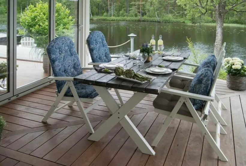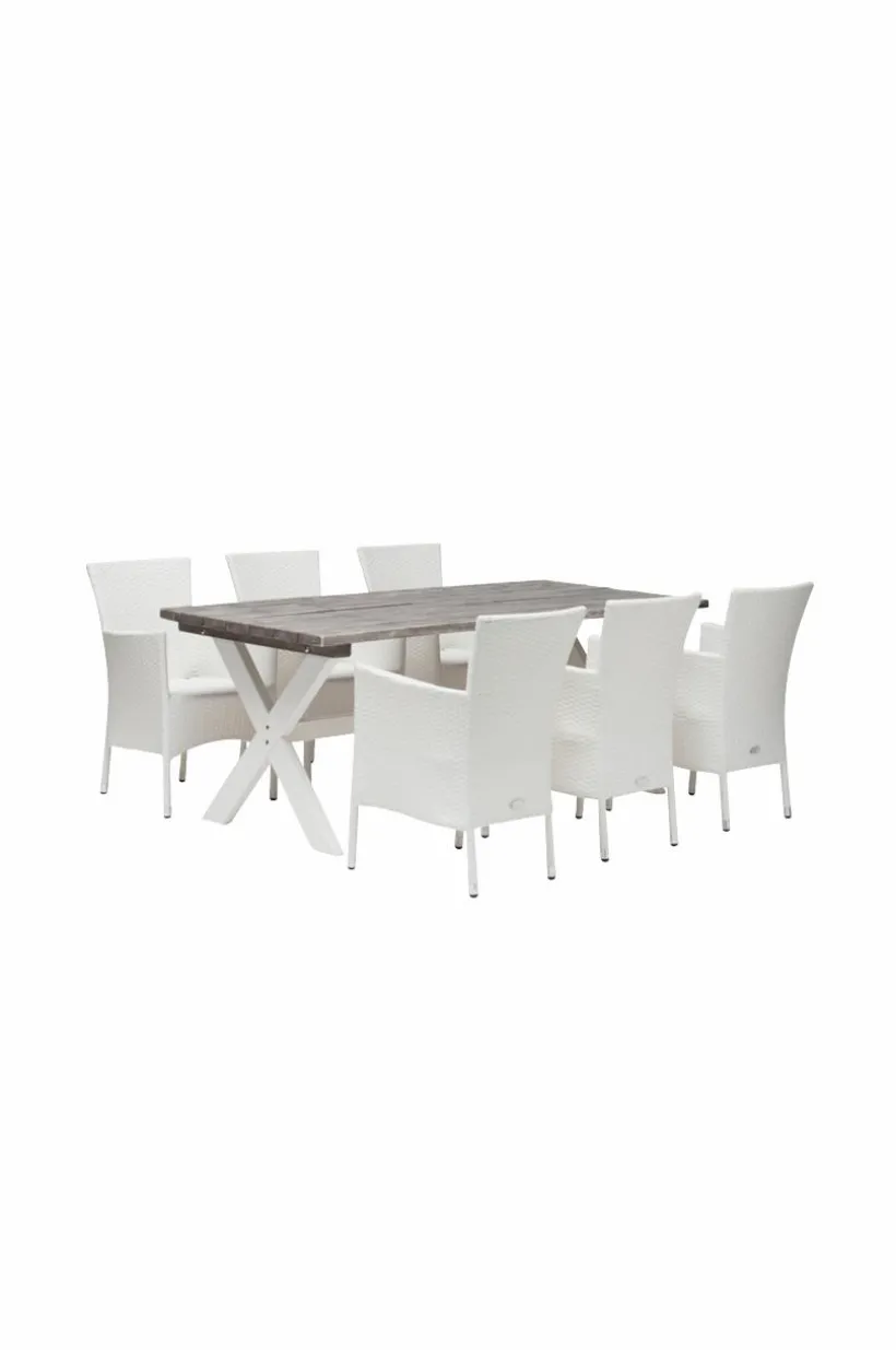 Shabby Chic bord 86 X 195 cm. Grålaserad borstad bordsskiva med vita ben. FSC-certifierad kärnfuru från Norrland.