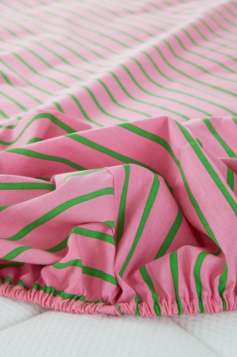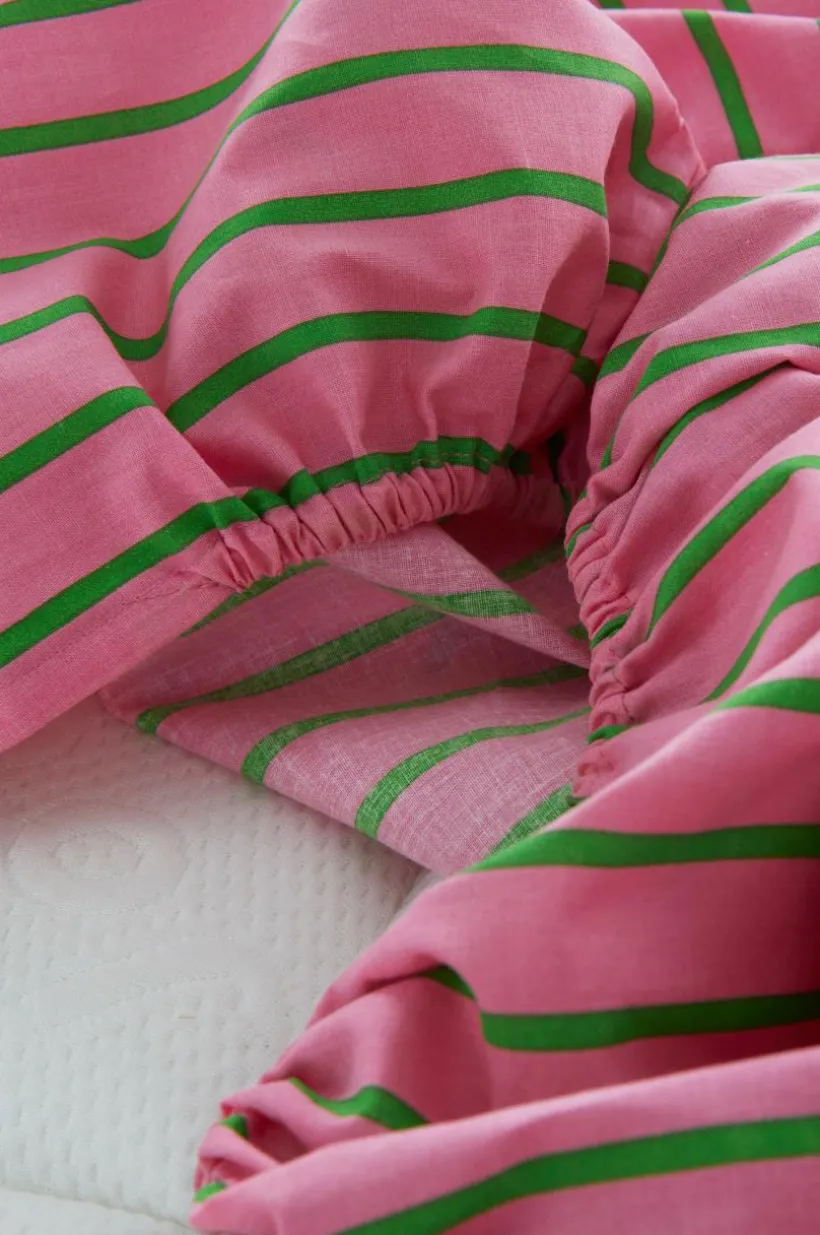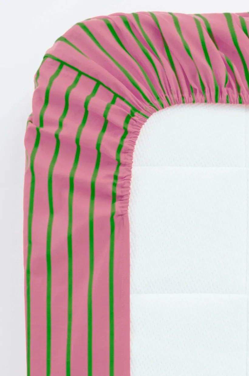 SIMA lakan i ekologisk bomull ger ditt barn en mjuk famn för en lugn nattsömn. Lakanet har skarpa, randiga tryck och hörnresårer som ger en säker och åtsittande passform för enkel bäddning. Perfekt för en mysig spjälsängsmiljö.