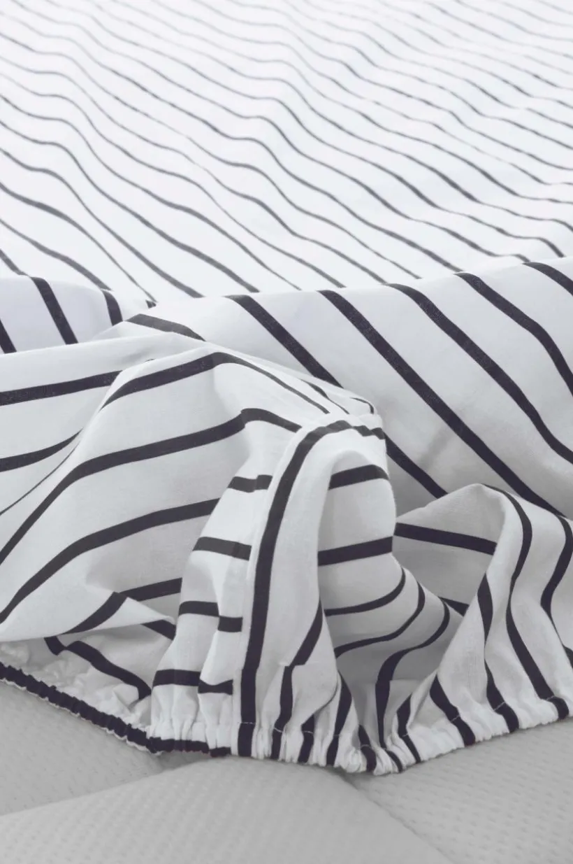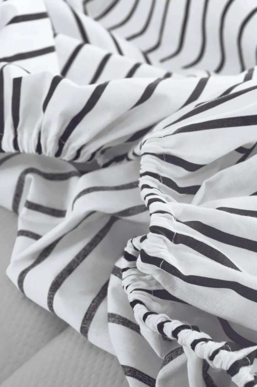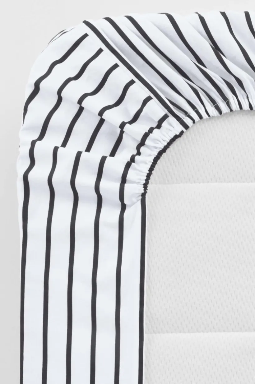 SIMA lakan i ekologisk bomull ger ditt barn en mjuk famn för en lugn nattsömn. Lakanet har skarpa, randiga tryck och hörnresårer som ger en säker och åtsittande passform för enkel bäddning. Perfekt för en mysig spjälsängsmiljö.
